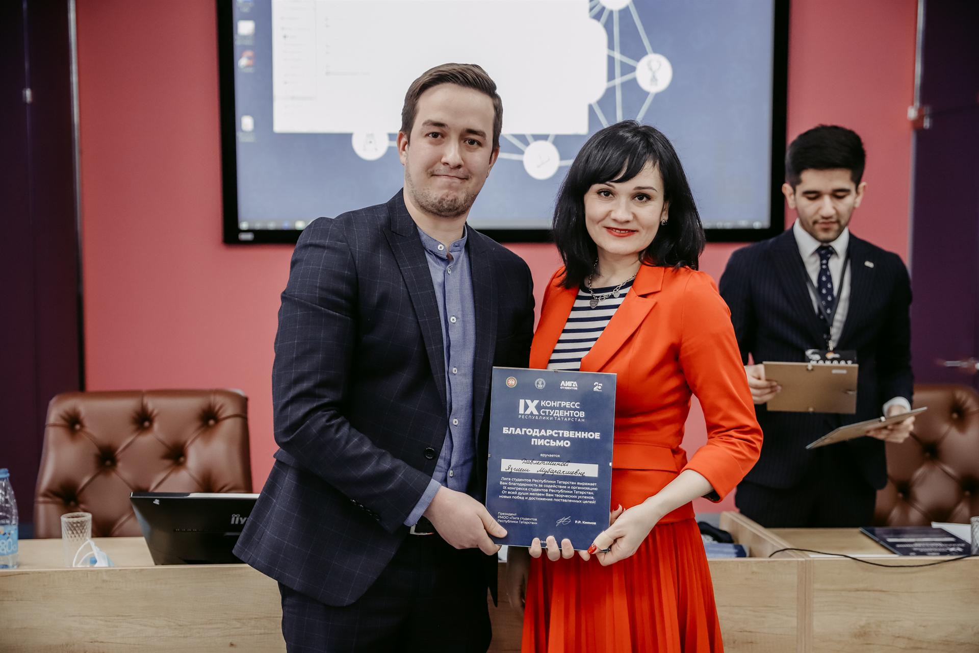 Руководителю пресс-службы КГЭУ Язглем Давлетшиной вручили Благодарственное письмо РМОО «Лига студентов РТ» за активное участие в работе тематической площадки.