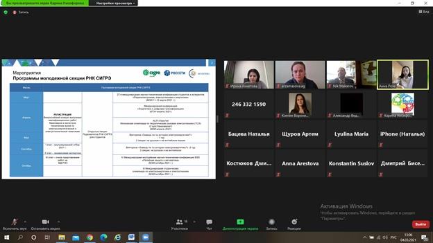 4.03.2021 состоялось совещание Координаторов Молодежной секции Международного Совета по большим электрическим системам высокого напряжения – СИГРЭ Фонда образовательных проектов «Надежная смена» в он-лайн формате.