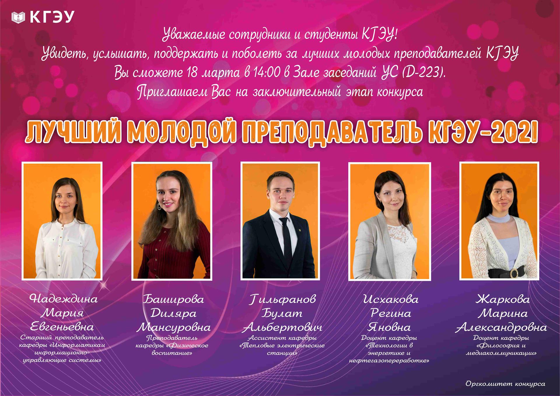 ПРИГЛАШАЕМ НА ФИНАЛ КОНКУРСА "ЛУЧШИЙ МОЛОДОЙ ПРЕПОДАВАТЕЛЬ КГЭУ 2021"