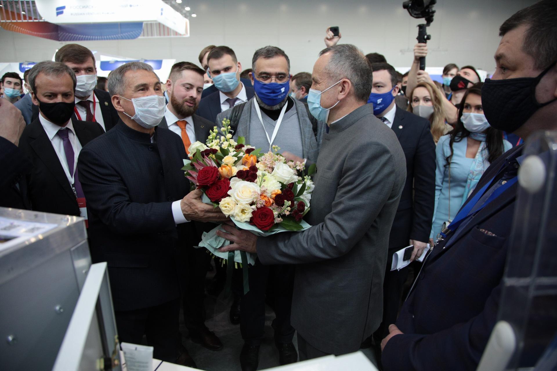Аркадий Дворкович попросил у него визитку и заверил, что обязательно свяжется с ученым. А Рустам Минниханов поздравил ректора КГЭУ Эдварда Абдуллазянова с Днем рождения.