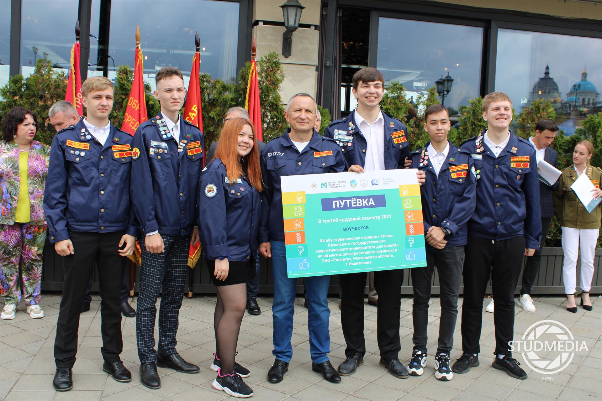 Кульминацией праздника стала развернувшаяся на набережной торжественная церемония открытия трудового семестра. Руководители штабов сдали почетным гостям рапорт о готовности к летнему сезону и получили долгожданные путевки для работы на трудовых объектах. Ректор КГЭУ Эдвард Абдуллазянов вручил путевку бойцам штаба "Тесла" на объектах электросетевого комплекса ПАО "Россети" в Московской области.