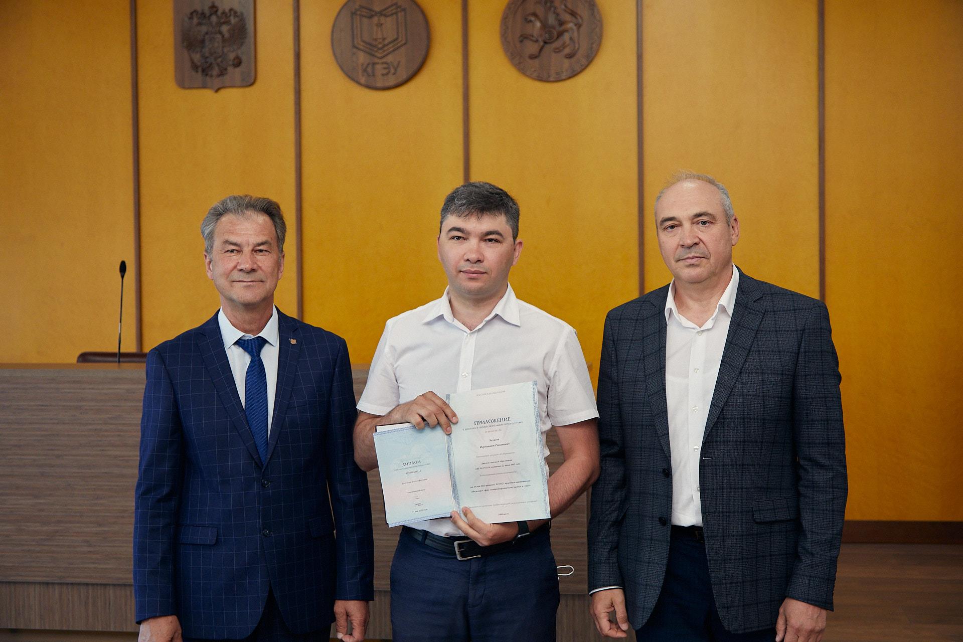 В торжественной церемонии вручения приняли участие: директор департамента непрерывного образования Владимир Ильин, директор института дополнительного профессионального образования Рустем Ахметов, заместитель начальника Управления капитального строительства АО "Сетевая компания" Вадим Чернов, начальник отдела тарифной политики АО "Сетевая компания"- Светлана Нугуманова. Все выступающие отметили растущий с каждым годом уровень специалистов, направленных на обучение по программе профессиональной переподготовки.