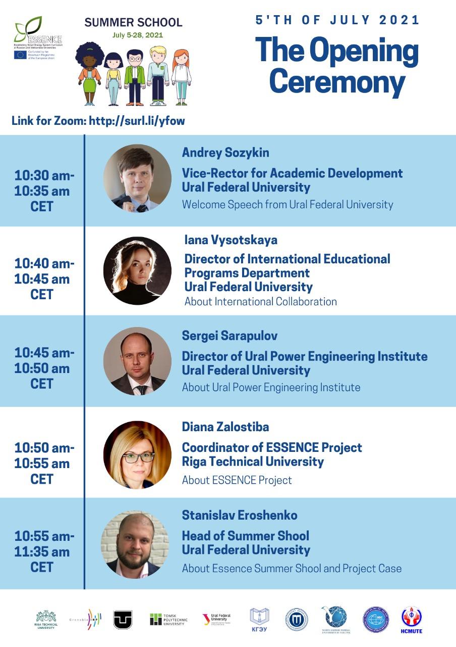 Летняя школа ESSENCE — это курс дополнительного образования в рамках проекта ESSENCE, поддержанного европейской программой ERASMUS+. Школа продлится три недели с 5 по 28 июля, участники будут работать в дистанционном формате. Язык мероприятий — английский. Участники летней школы смогут послушать лекции от международных экспертов и посоревноваться в решении кейс-заданий по интеллектуальной энергетике. Официальное открытие состоится 5 июля в 11.30 (по МСК), открытие пройдет онлайн, приглашаем присоединиться всех желающих Join a Zoom meeting: https://us02web.zoom.us/j/89467866194?pwd=Z0lsR1AvQUVuaW5aY1VIZ3oyQlhHdz09 Conference ID: 894 6786 6194 Access code: 015641