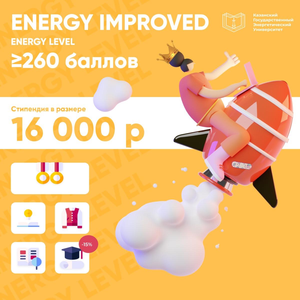 Первокурсники с 260 баллами и выше сразу поднимаются на третий уровень – «ENERGY IMPROVED» и первые четыре месяца получают стипендию в размере 16 тысяч рублей.