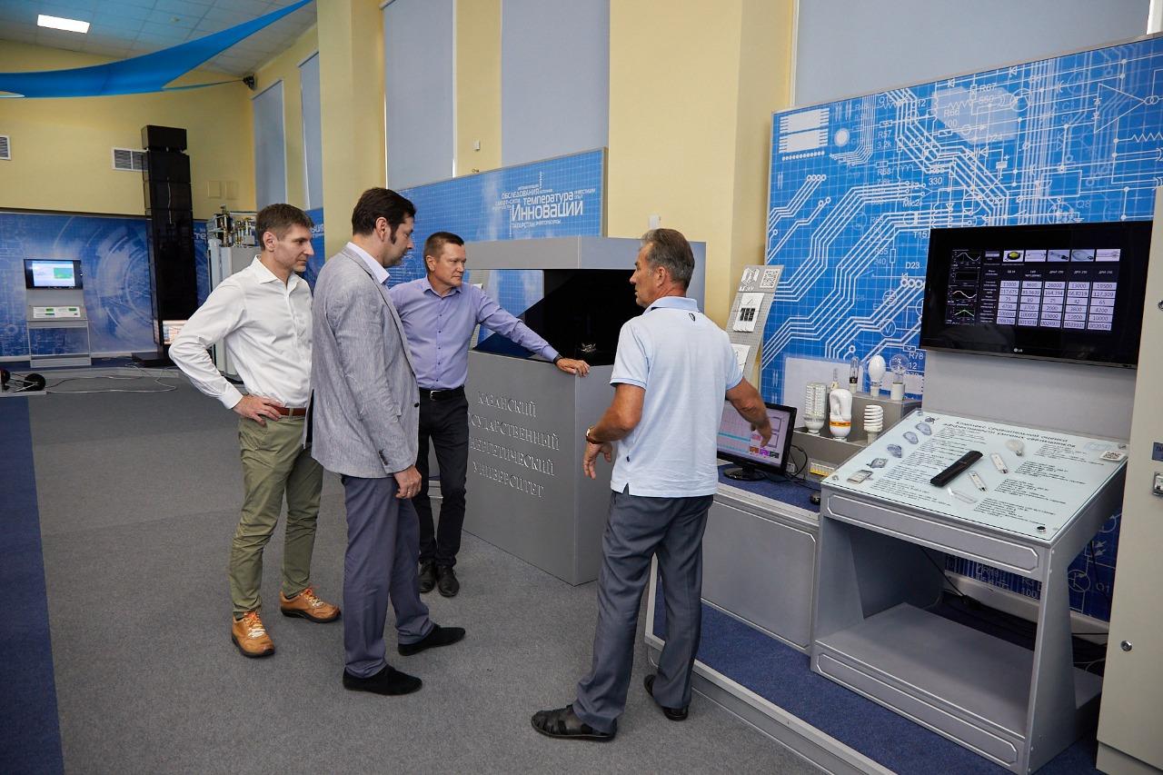 Далее прошло знакомство с университетом. Гостям показали подстанцию 110/10 кВ, учебно-образовательные центры Эван, ЭлектроСкиллс, Данфосс, физико-химические лаборатории, Точку кипения и инжиниринговый центр.