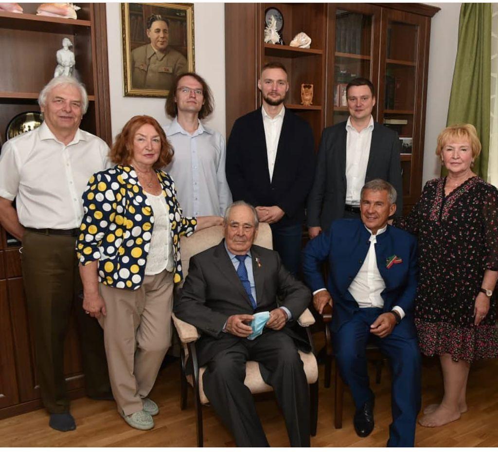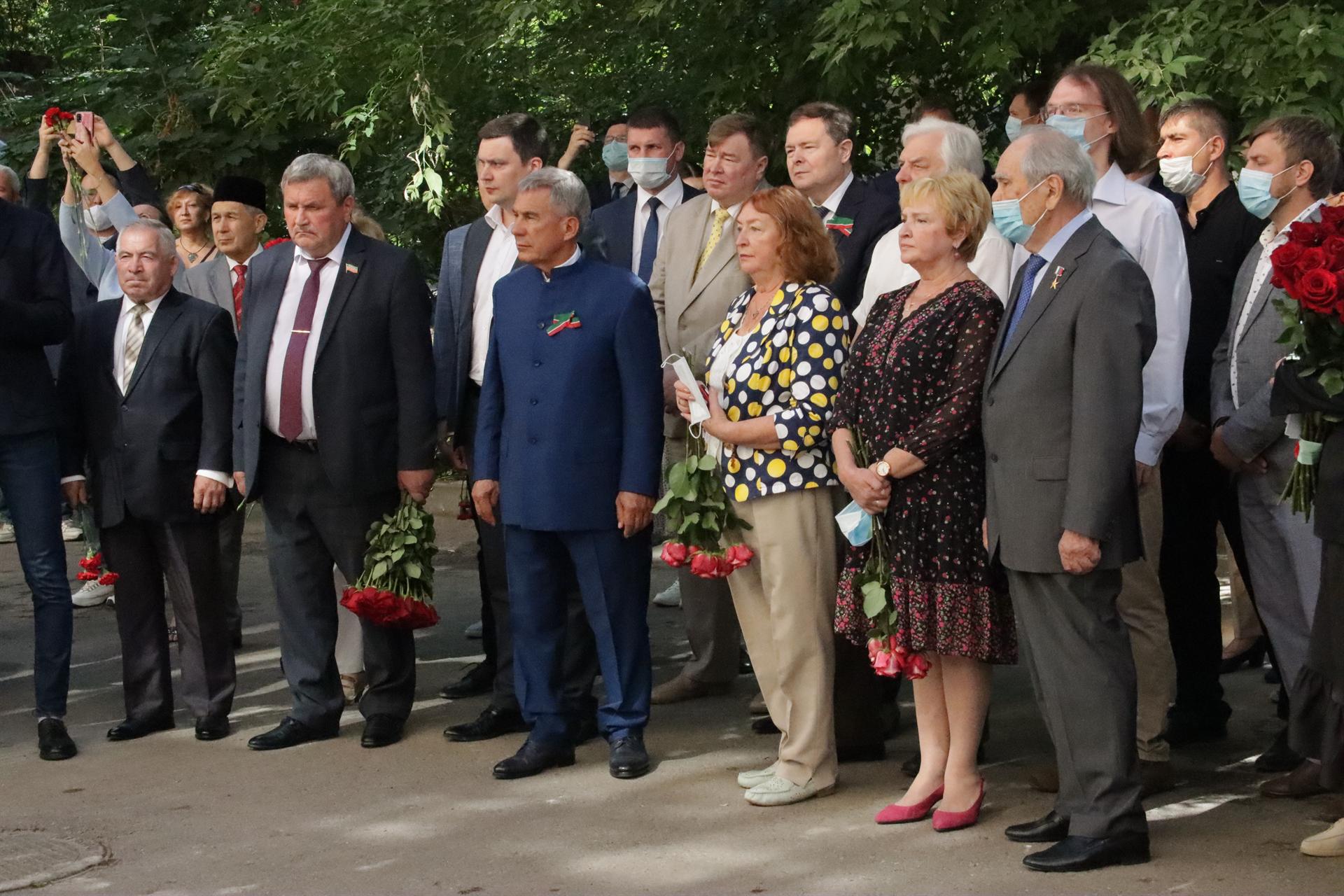 Затем Президент Татарстан и Государственный Советник РТ возложили цветы и посетили квартиру, в которой жили Кави Наджми и Сарвар Адгамова.