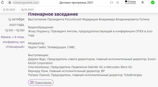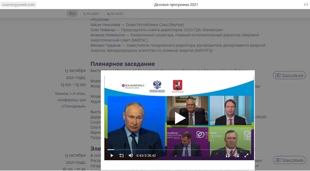 Прямые трансляции пленарного заседания и других мероприятий деловой программы можно посмотреть: