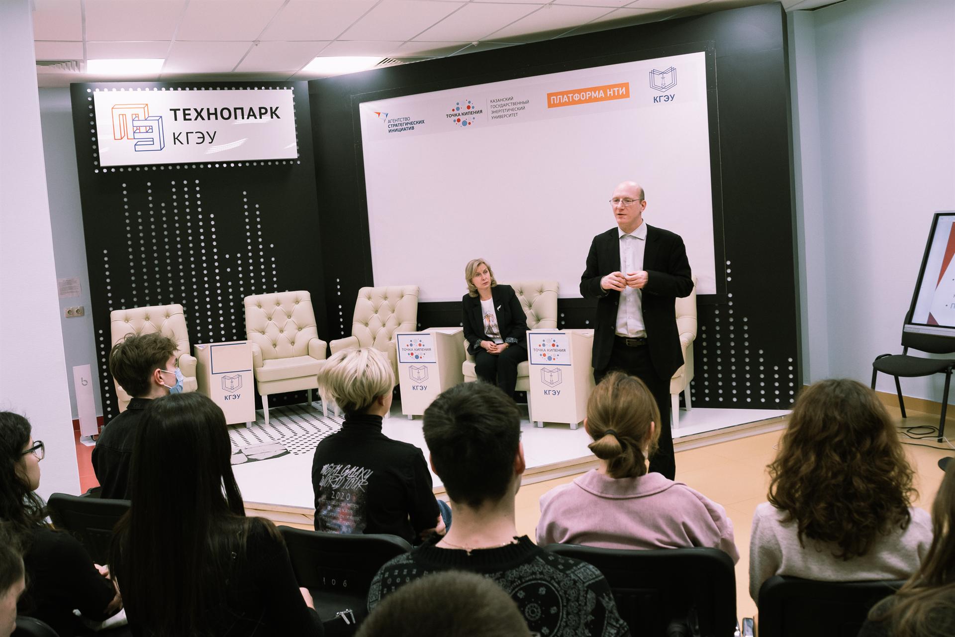 Визит был организован пресс-службой вуза. Владимир Медейко встретился с первым проректором КГЭУ Александром Леонтьевым и проректором по воспитательной и социальной работе Ириной Жуковой и пообщался со студентами в университетской «Точке кипения». Он рассказал ребятам, как начинал проект, с каким трудностями столкнулся, и как их преодолевал.