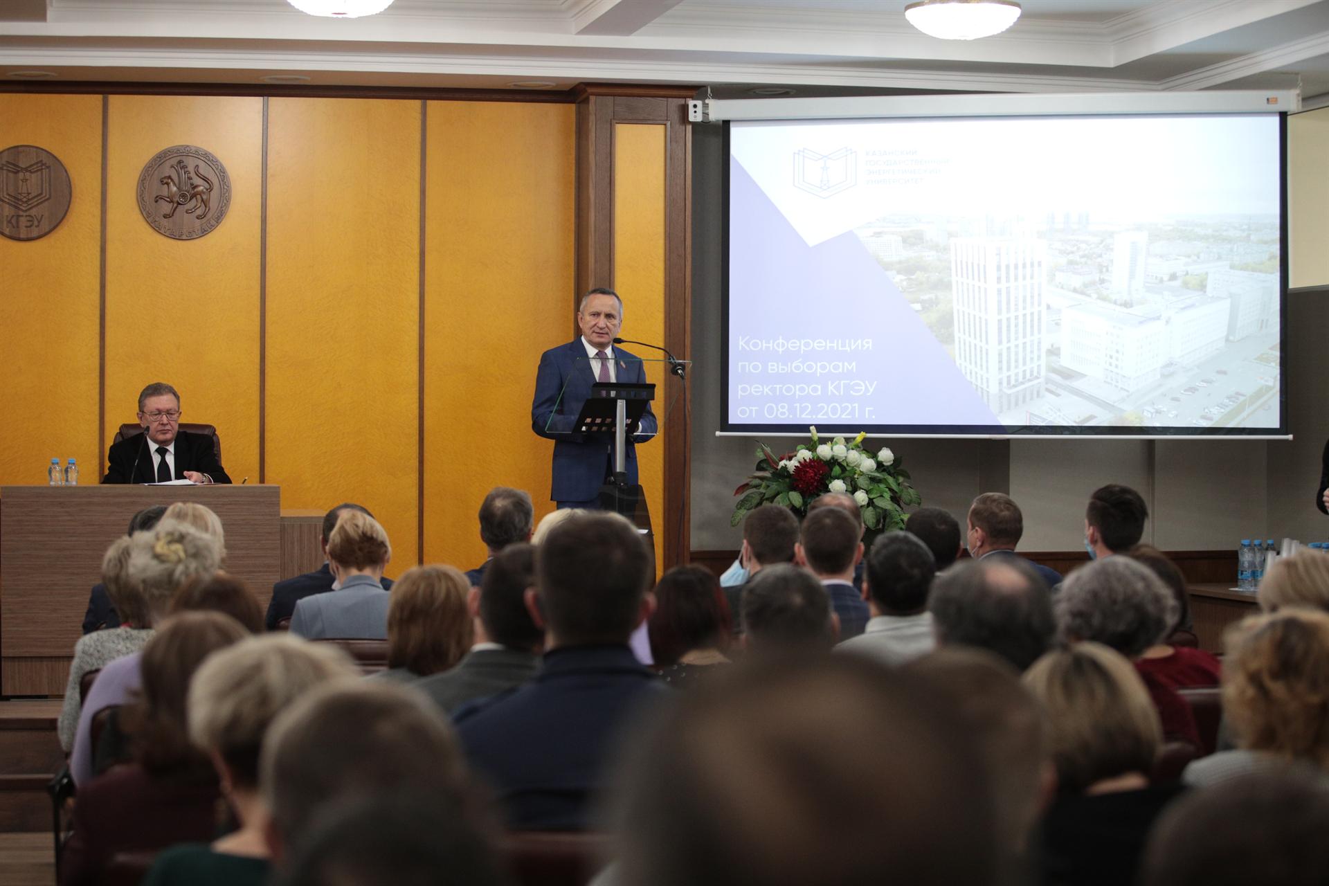 Кандидаты на пост ректора презентовали свои программы развития Казанского государственного энергетического университета на предвыборной Конференции научно-педагогических работников и обучающихся. В мероприятии также приняли участие замминистра промышленности и торговли РТ Марат Минибаев, начальник управления профессионального образования Министерства образования и науки РТ Андрей Фёдоров, директор АО «Татэнергосбыт» Рифнур Сулейманов, заместитель генерального директора – технический директор АО «Татэнерго» Ильгизар Гайфуллин, заместитель генерального директора АО «Сетевая компания» Вадим Лукин.