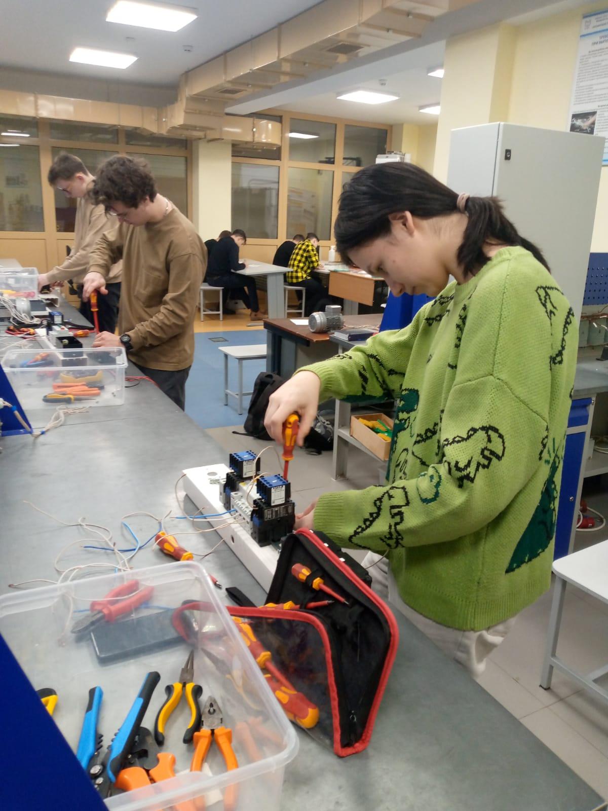 Интересный факт, профессия «электрика» перестает быть чисто мужской, чему свидетельствуют наличие девушек в обеих группах, которые наравне с парнями работали с инструментами, выполняли монтаж электрических схем.