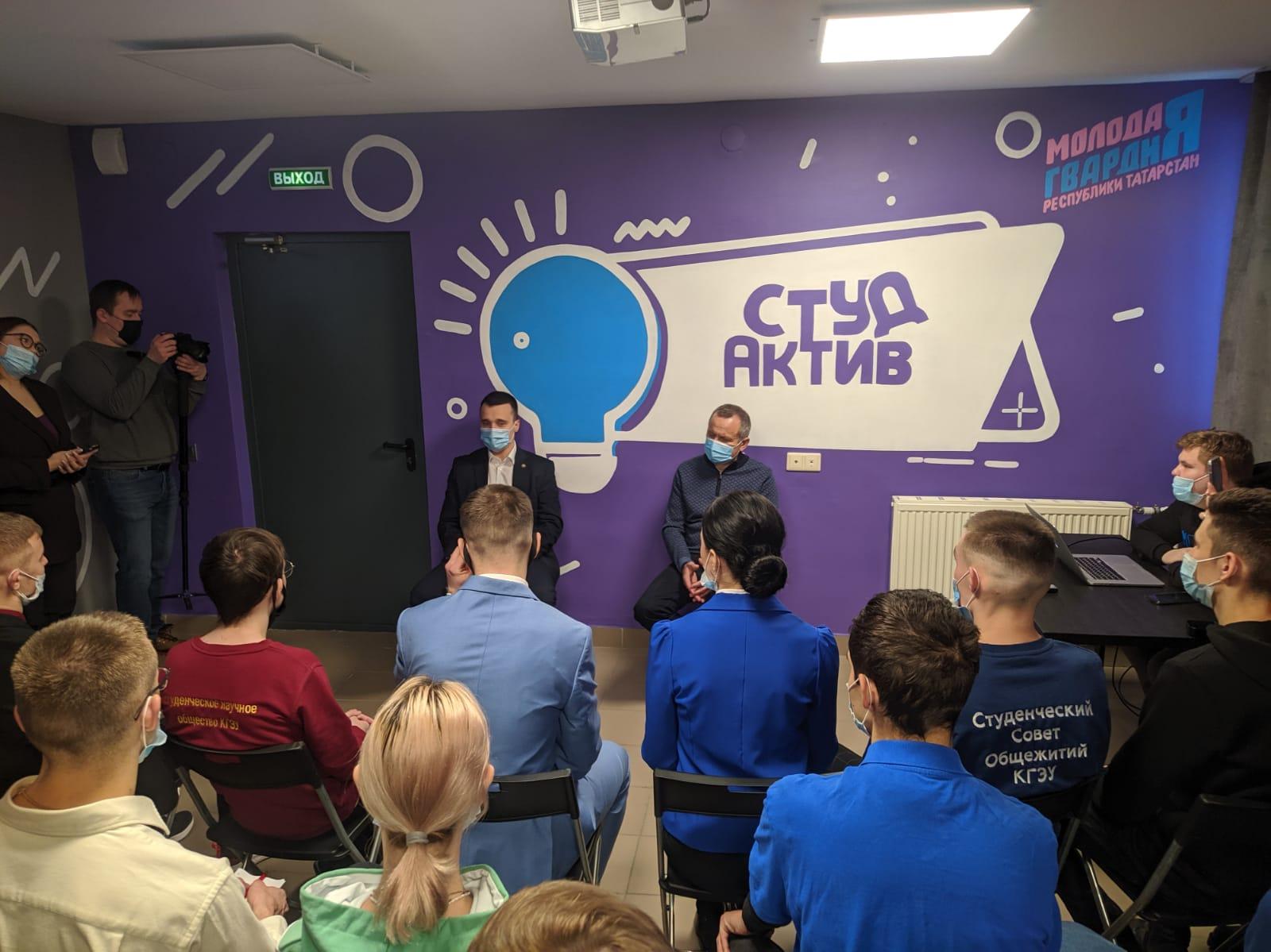 В помещении коворкинга представители общественных организаций студентов КГЭУ смогли задать министру вопросы и озвучить свои просьбы. Например, финалист конкурса «Твой ход» Руслан Мавлетов, чья команда выиграла грант 2,5 миллиона рублей на развитие университета поделился планами создания в КГЭУ уникального коворкинга с несколькими рабочими зонами, где студенты могли бы готовиться к участию в подобных конкурсах и проектах. Руслан попросил содействия в приглашении спикеров, которые могли бы поделиться самыми эффективными практиками по развитию Soft Skills.