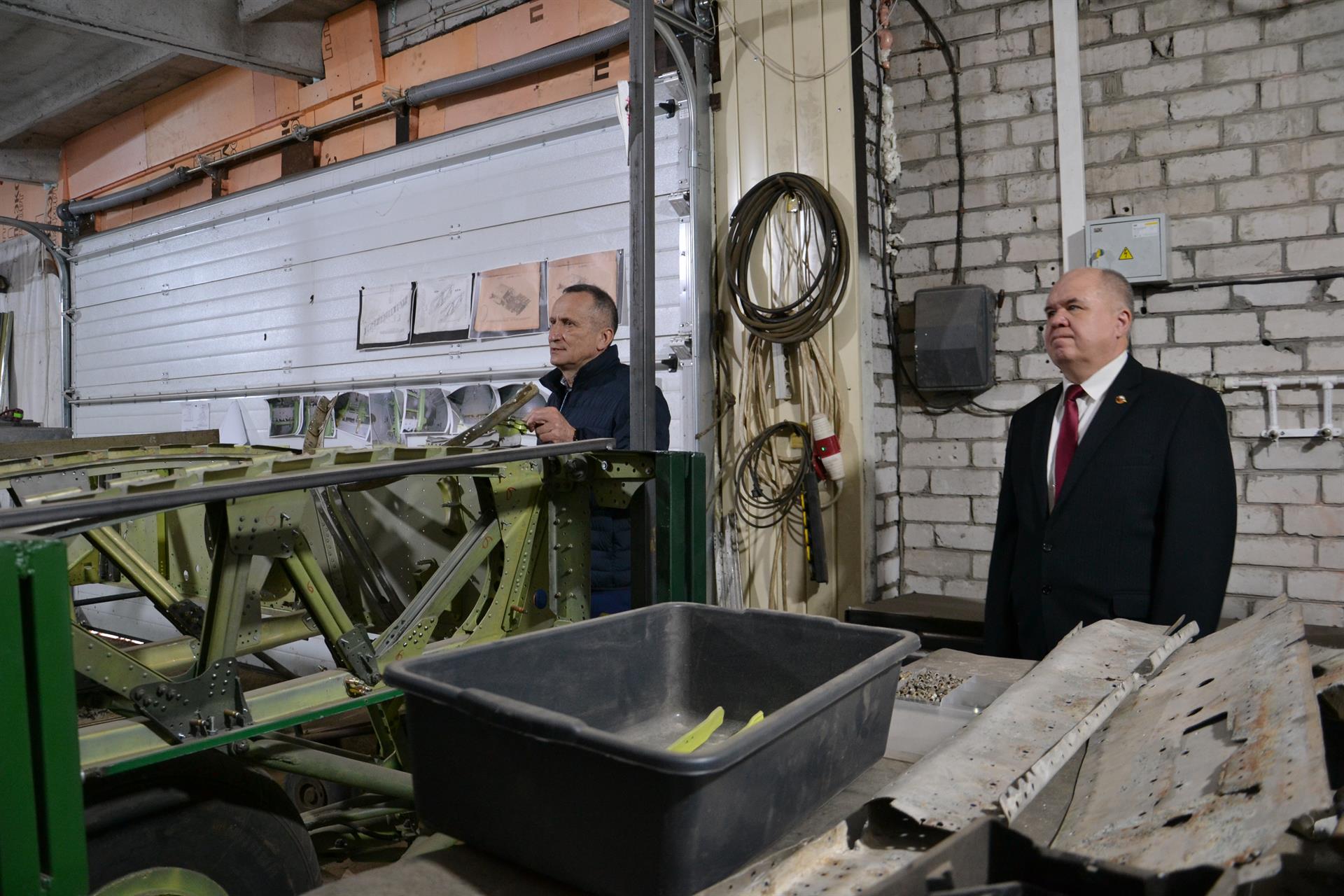 Экскурсию по помещениям и мастерским Объединения "Отечество" провел председатель совета организации, руководитель поискового отряда "Разведка" Александр Коноплев. Он рассказал о работе поисковых отрядов Татарстана и показал военный самолет времен Великой Отечественной войны, который восстанавливают из найденных на месте раскопок деталей.