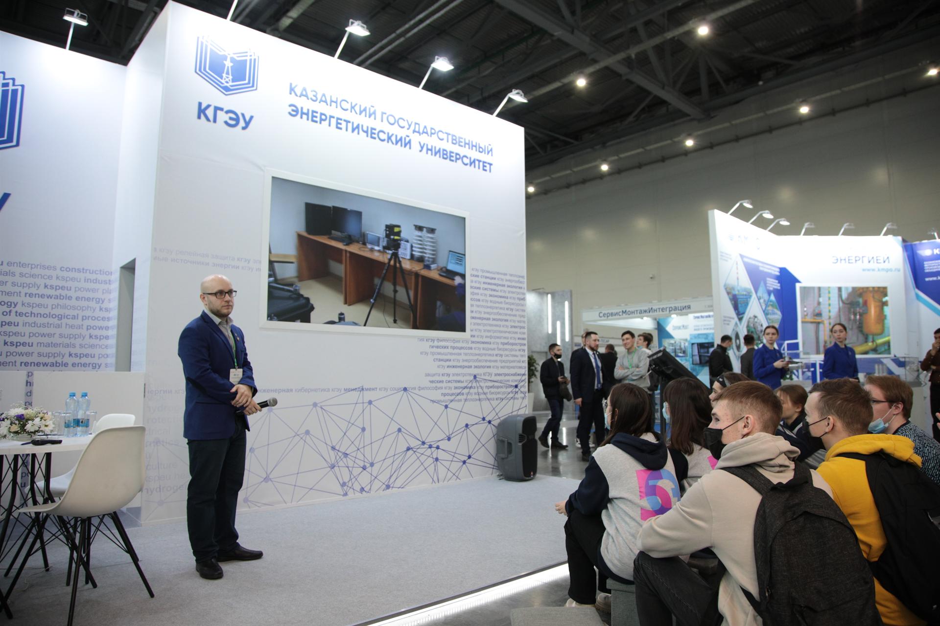 На стенде Казанского энергоуниверситета ему представили разработки ученых вуза в рамках федеральных целевых программ и программы стратегического академического лидерства «Приоритет -2030», а также инновационное оборудование учебных лабораторий от предприятий-партнеров.