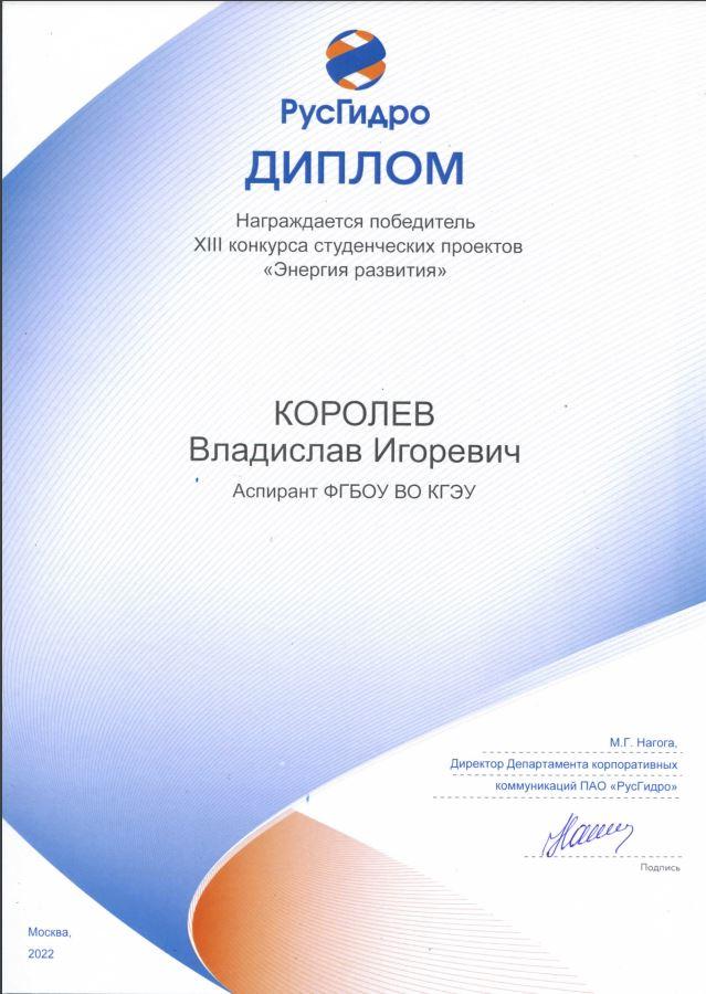 Аспирант Казанского государственного энергетического университета Владислав Королев стал победителем XIII Всероссийского конкурса студенческих проектов «Энергия развития».