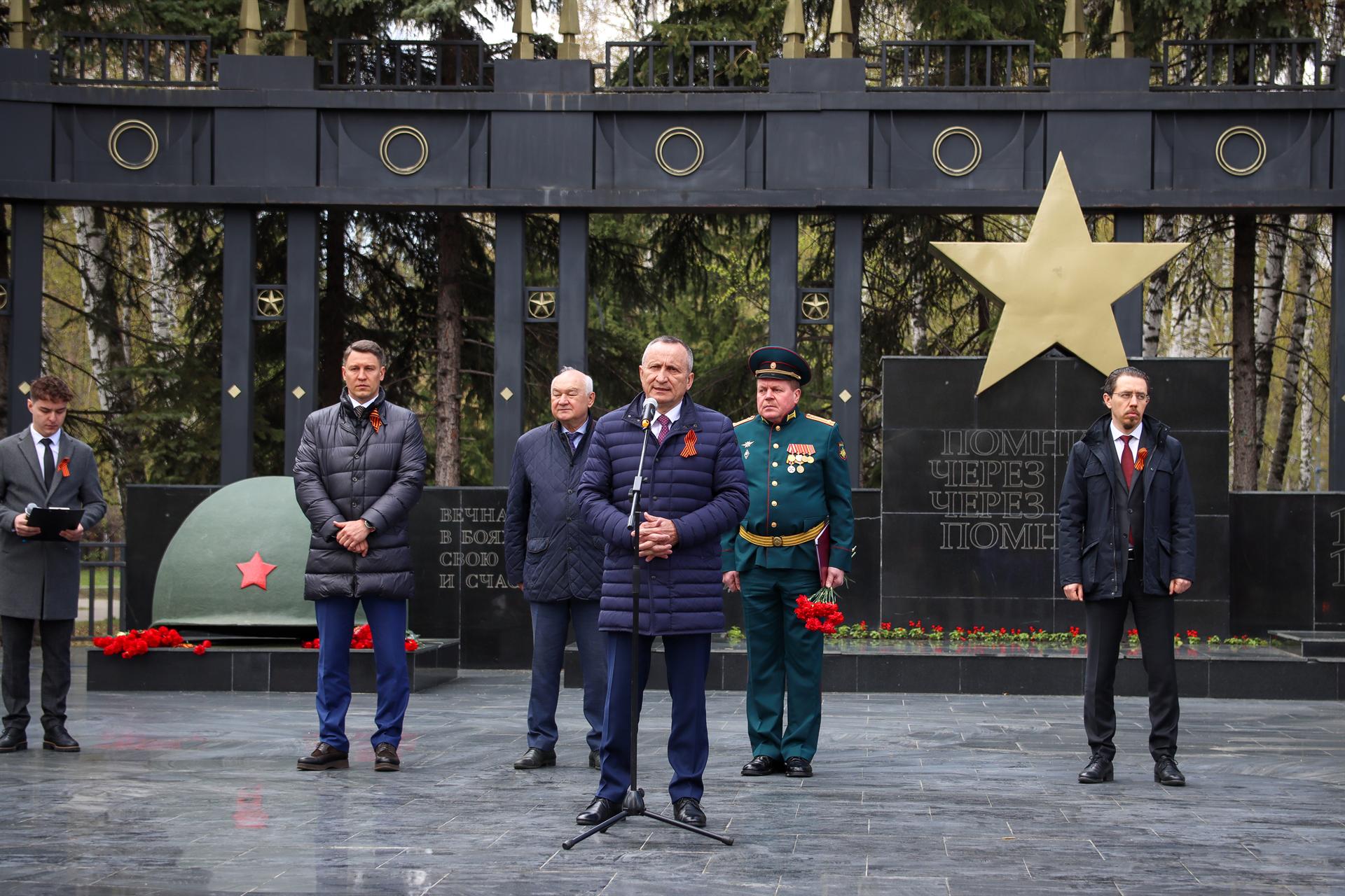 РЕКТОР КГЭУ ВОЗЛОЖИЛ ЦВЕТЫ К МЕМОРИАЛУ ВОВ В ПАРКЕ УРИЦКОГО