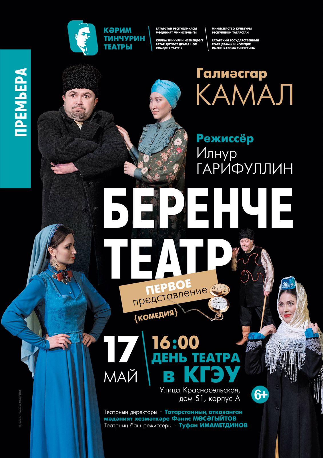 17 мая в 16.00 часов в Казанском государственном энергетическом университете состоится День театра. Татарский государственный театр драмы и комедии имени Карима Тинчурина студентам покажет комедию «Беренче театр». Билеты можно приобрести по «Пушкинской карте».