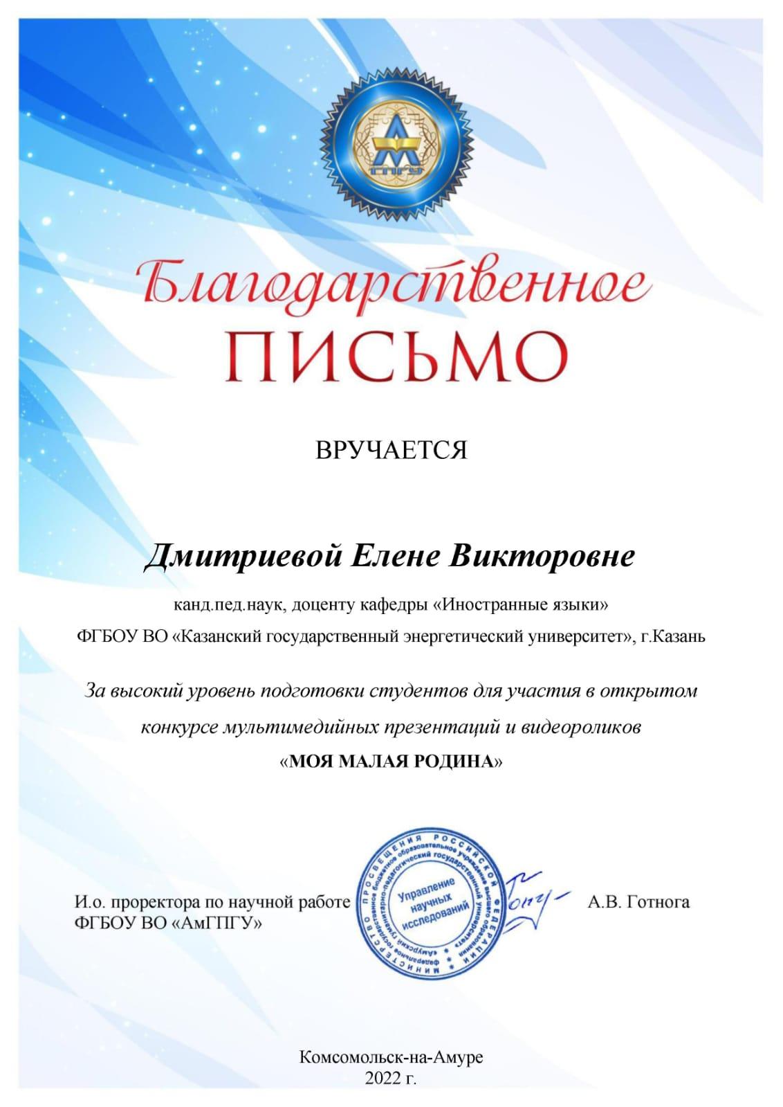 Открытый всероссийский конкурс мультимедийных презентаций и видеороликов среди учащихся вузов, ссузов и школ Российской Федерации проходил с 18 по 27 апреля 2022 года на базе кафедры иностранных языков Амурского гуманитарно-педагогического государственного университета.