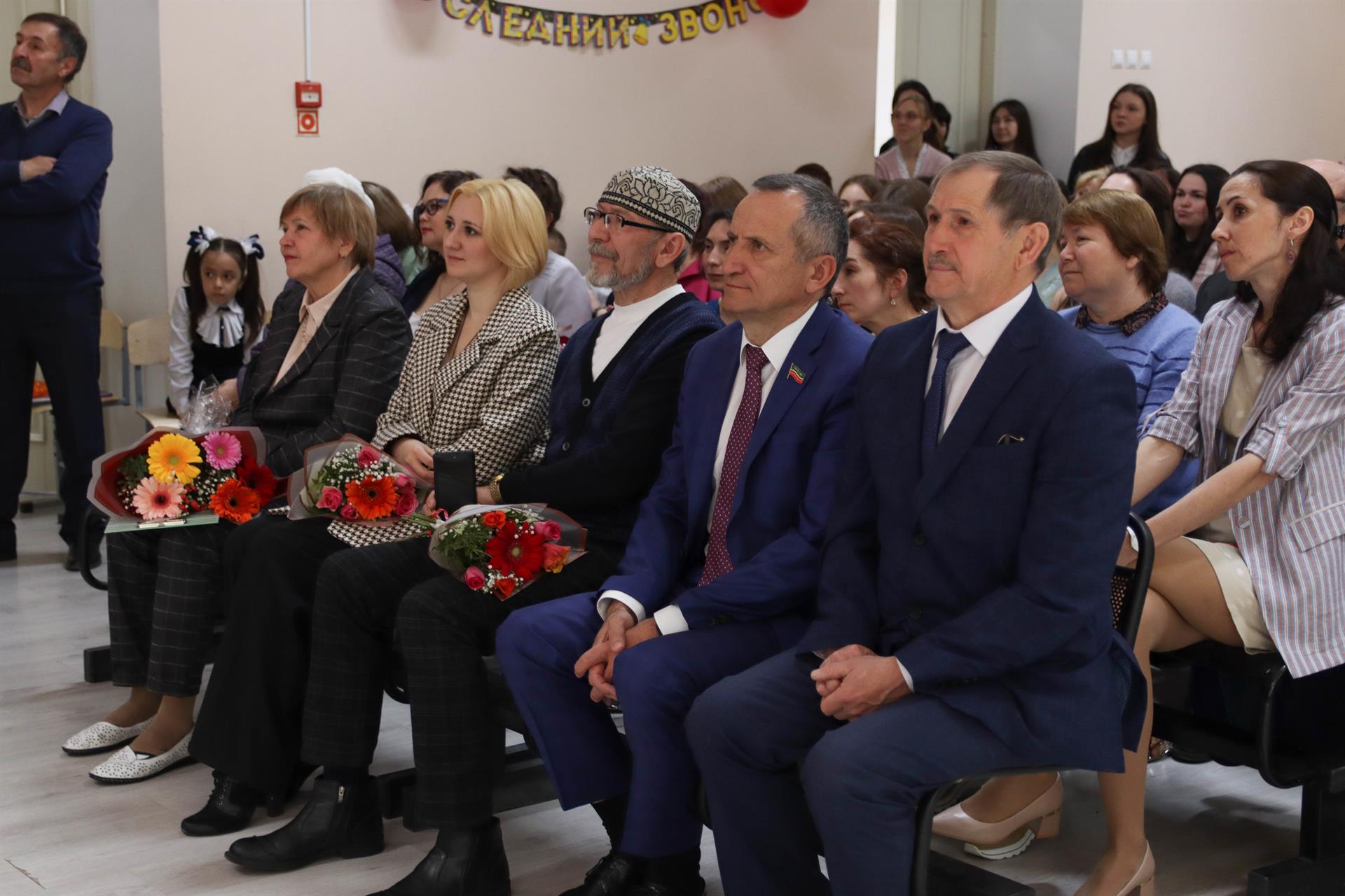 Последний звонок для учащихся девятых и одиннадцатых классов Татарской гимназии № 15 Кировского района Казани прозвучал 25 мая. Эдвард Абдуллазянов поздравил выпускников и их родителей с этим знаменательным днем и выступил с напутственным словом. Он напомнил вчерашним школьникам, что теперь перед ними открывается множество дорог и возможностей, и что надо просто сделать правильный выбор. Эдвард Абдуллазянов пожелал выпускникам здоровья, успехов, достижения всех намеченных целей.