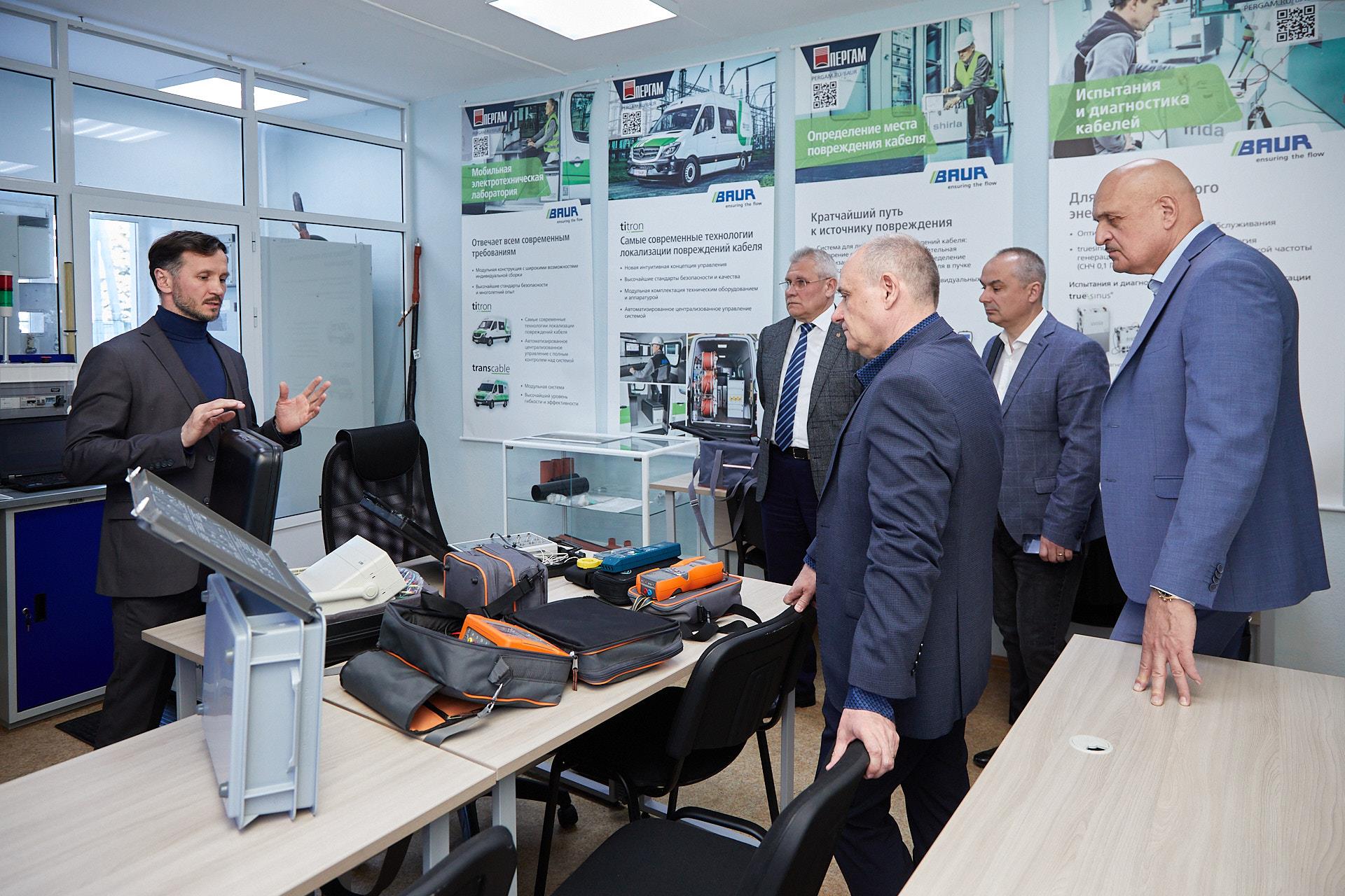 Начальник Управления энергетики ПАО «Газпром» Анатолий Шаповало, начальник отдела главного энергетика ООО «Газпром трансгаз Казань» Альберт Сафиуллин, профессор кафедры термодинамики и тепловых двигателей РГУ нефти и газа им. И.М. Губкина Борис Житомирский посетили лаборатории и центры Технопарка КГЭУ, лаборатории «Электромобильный и беспилотный транспорт, зарядная инфраструктура» и «Электромобильная зарядная станция», Центра разработки и внедрения цифровых распределительных систем мониторинга линий электропередач и подстанций, возложили цветы к мемориалу энергетикам, работавшим и воевавшим во время Великой Отечественной войны.