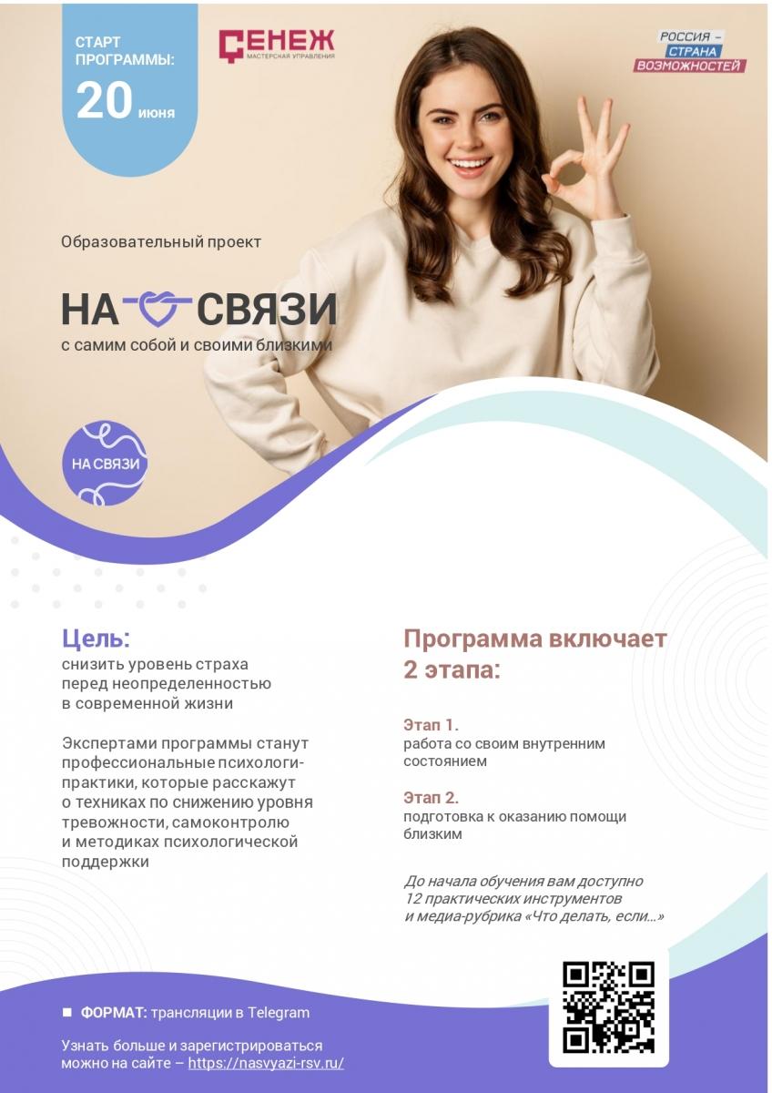 Образовательный центр Президентской платформы «Россия – страна возможностей» Мастерская управления «Сенеж» и Клуб лидеров России «Эльбрус» с 20 июня 2022 года запускают третий поток образовательной онлайн-программы «На связи».