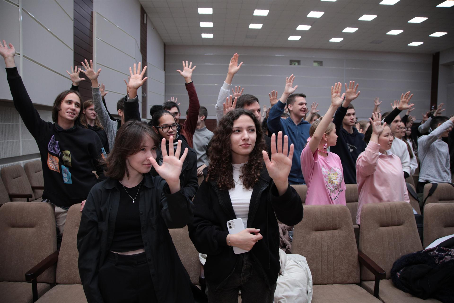Продолжился праздник в актовом зале КГЭУ. Новички прочитали «заклинание», чтобы приворожить «пятерки» в зачетки, выполнили «ритуал» очищения головы от дурных мыслей и дали «страшную клятву» на верность выбранной специальности.