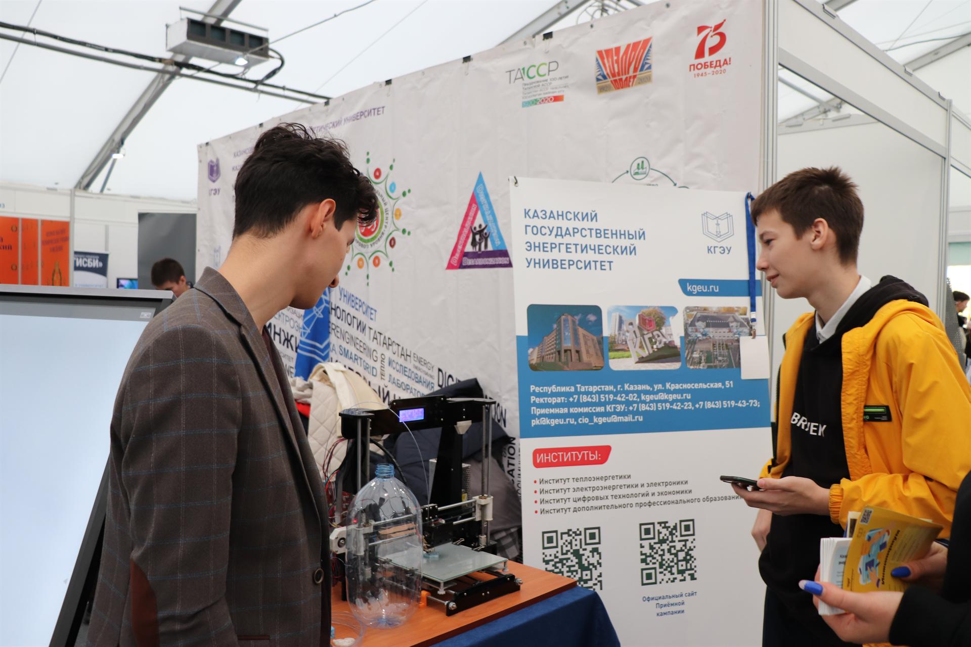 В рамках деловой программы образовательной выставки представители КГЭУ приняли участие в работе круглых столов «Российские студенческие отряды – старт в будущее» и «Студенческие отряды – кадры для сферы туризма». Бойцы Штаба «Тесла» КГЭУ организовали мастер-классы по направлениям деятельности студенческих отрядов. Резиденты Молодежного инновационного центра КГЭУ «Энергия» и представители кафедры "Инженерная графика" показали мастер-класс по 3D-моделированию, а представители кафедры «Электроснабжение промышленных предприятий» презентовали школьникам и участникам выставки курсы Electroskills, в ходе которых каждый имел возможность попробовать себя в роли электромонтажника.