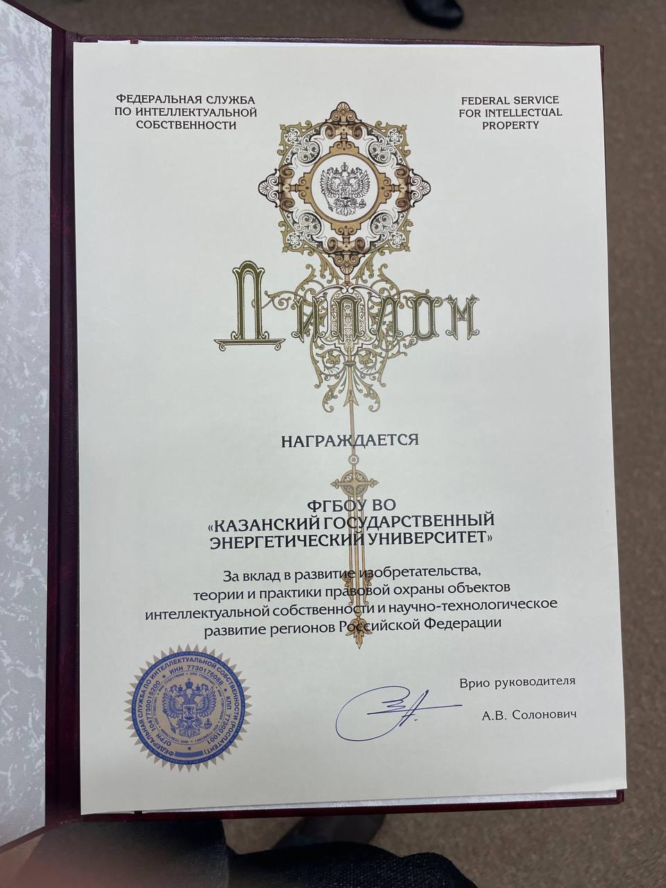 В рамках мероприятия прошло награждение победителей рейтинга «ТОП-15 лучших ЦПТИ по итогам работы в 2021 году». Юрий Зубов вручил диплом лучшего Центра поддержки технологий и инноваций начальнику управления научных исследований, инноваций и разработок КГЭУ Ильнуру Гатиятову.