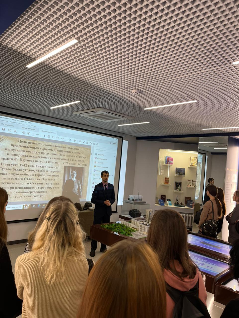 17 ноября в музее прошло патриотическое мероприятие для студентов группы РСО-2-22 посвященное 80-й годовщине начала Сталинградской битвы.