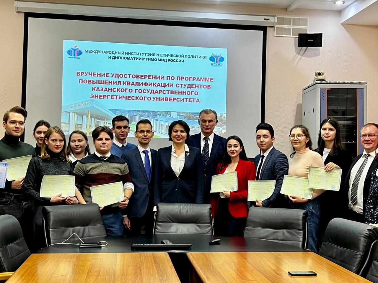 Студенты Казанского государственного энергетического университета прошли программу повышения квалификации «Международный опыт реформирования электроэнергетической отрасли» в Международном институте энергетической политики и дипломатии на базе кафедры мировой электроэнергетики Университета МГИМО.