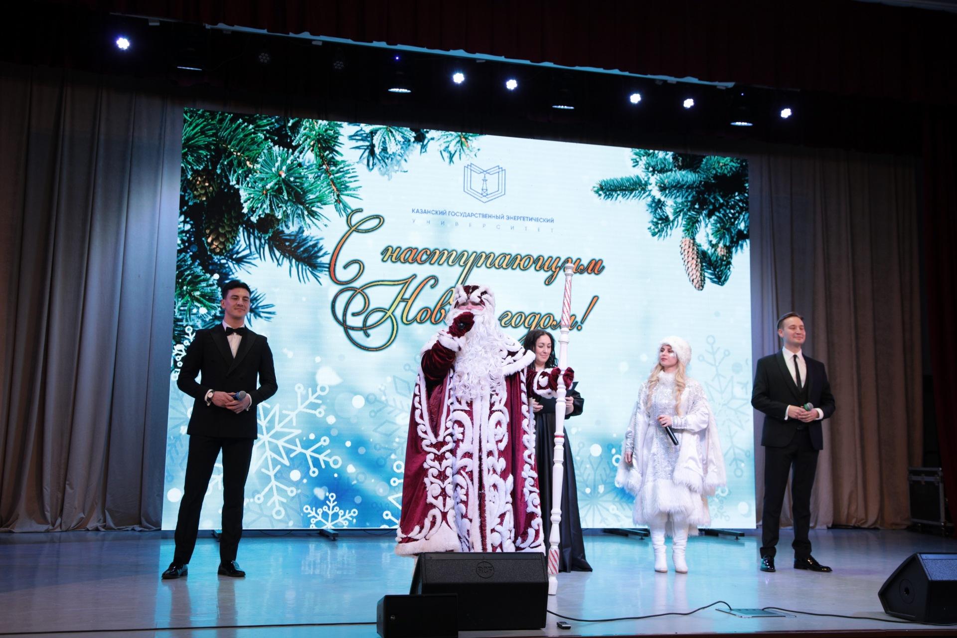 Праздничную концертную программу представили творческие коллективы Казанского энергоуниверситета, заслуженный артист РТ Айрат Ганиев, популярные исполнители, а также Дед Мороз и Снегурочка.