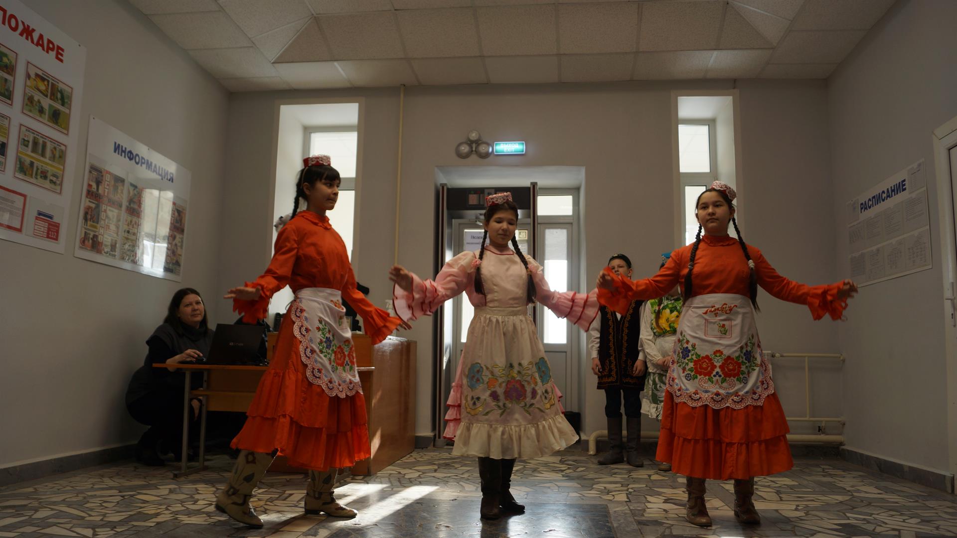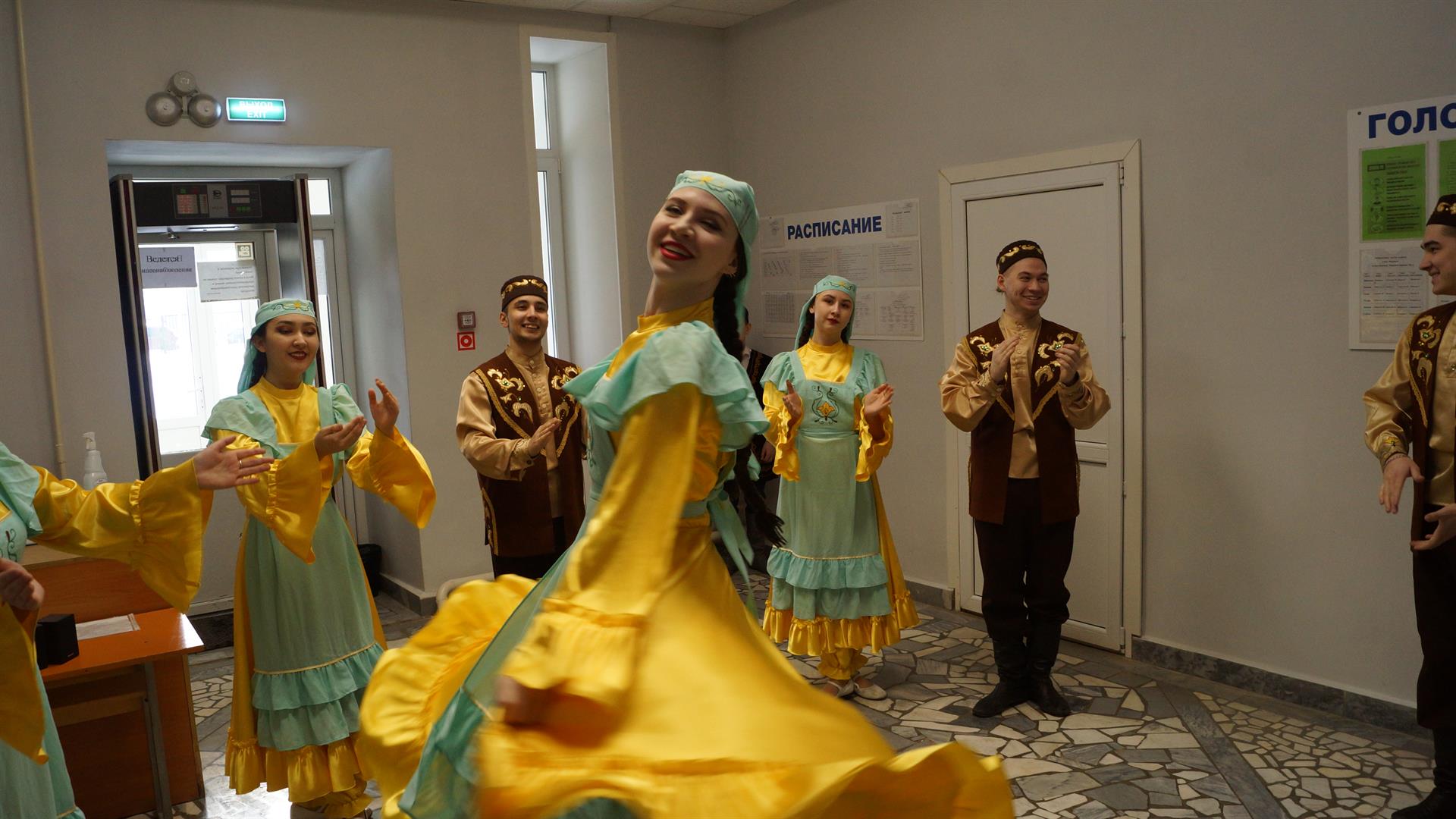 Учащиеся встретили гостей в национальных костюмах, организовали для них экскурсию в музей педагогической славы и концертную программу на двух государственных языках Республики Татарстан. Также перед гостями выступили отряд юных барабанщиц и танцевальный коллектив КГЭУ «Дуслык».