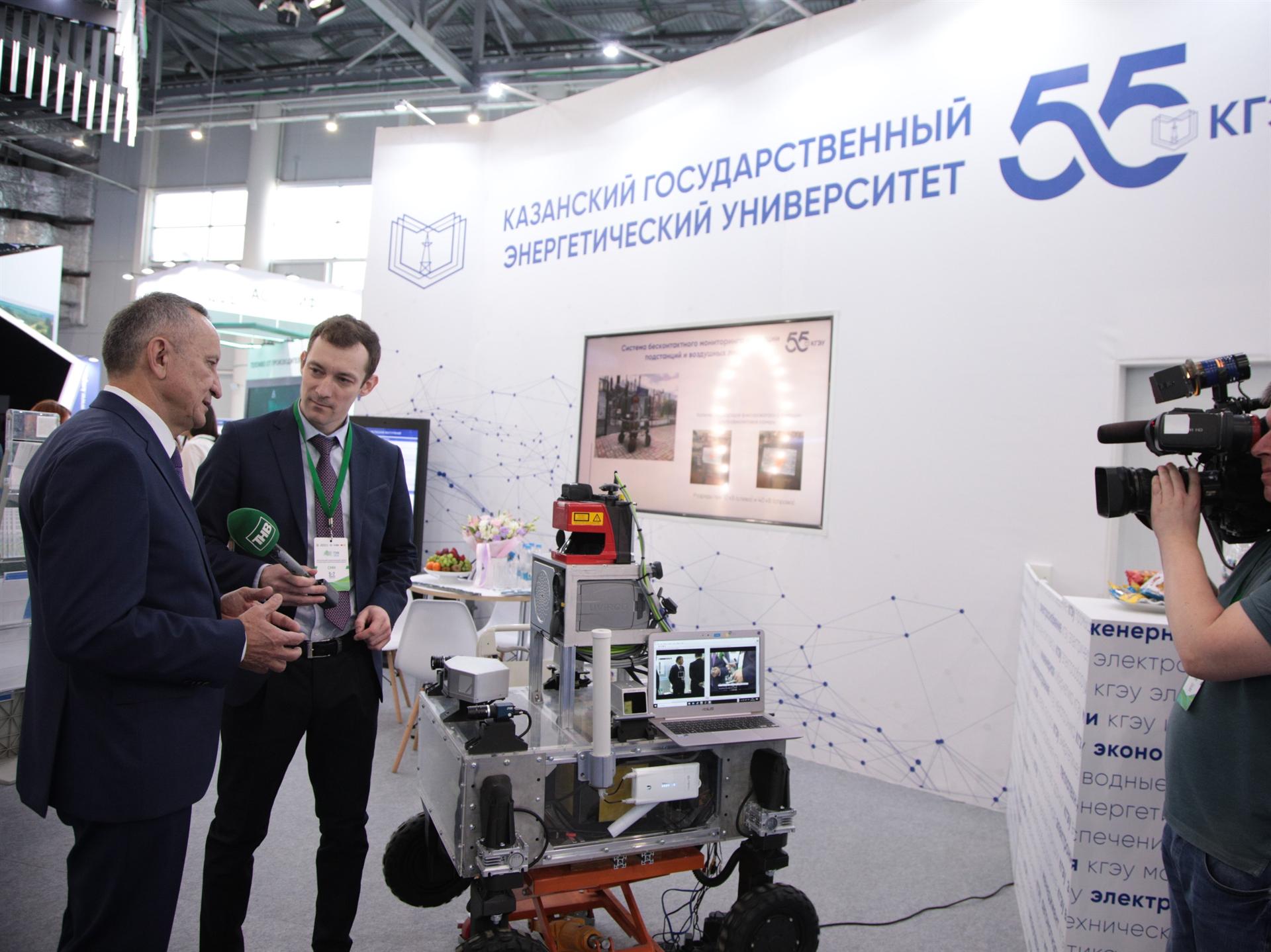На стенде КГЭУ на специализированной выставке, развернутой в рамках ТЭФ, была представлена информация по актуальным проектам, над которыми ученые вуза работают совместно с индустриальными партнерами. Зарядное индукционное устройство разработал профессор кафедры «Электроснабжение промышленных предприятий», доктор технических наук Альфред Сафин. Систему мониторинга воздушных линий электропередачи презентовал профессор, доктор технических наук, заведующий кафедрой «Теоретические основы электротехники» Марат Садыков. Он же ознакомил посетителей с функционалом робота для бесконтактной диагностики оборудования подстанций. Протонный магнитно-резонансный анализатор ПМРА-IV жидкости представил доктор технических наук, завкафедрой «Приборостроение и мехатроника» Олег Козелков.