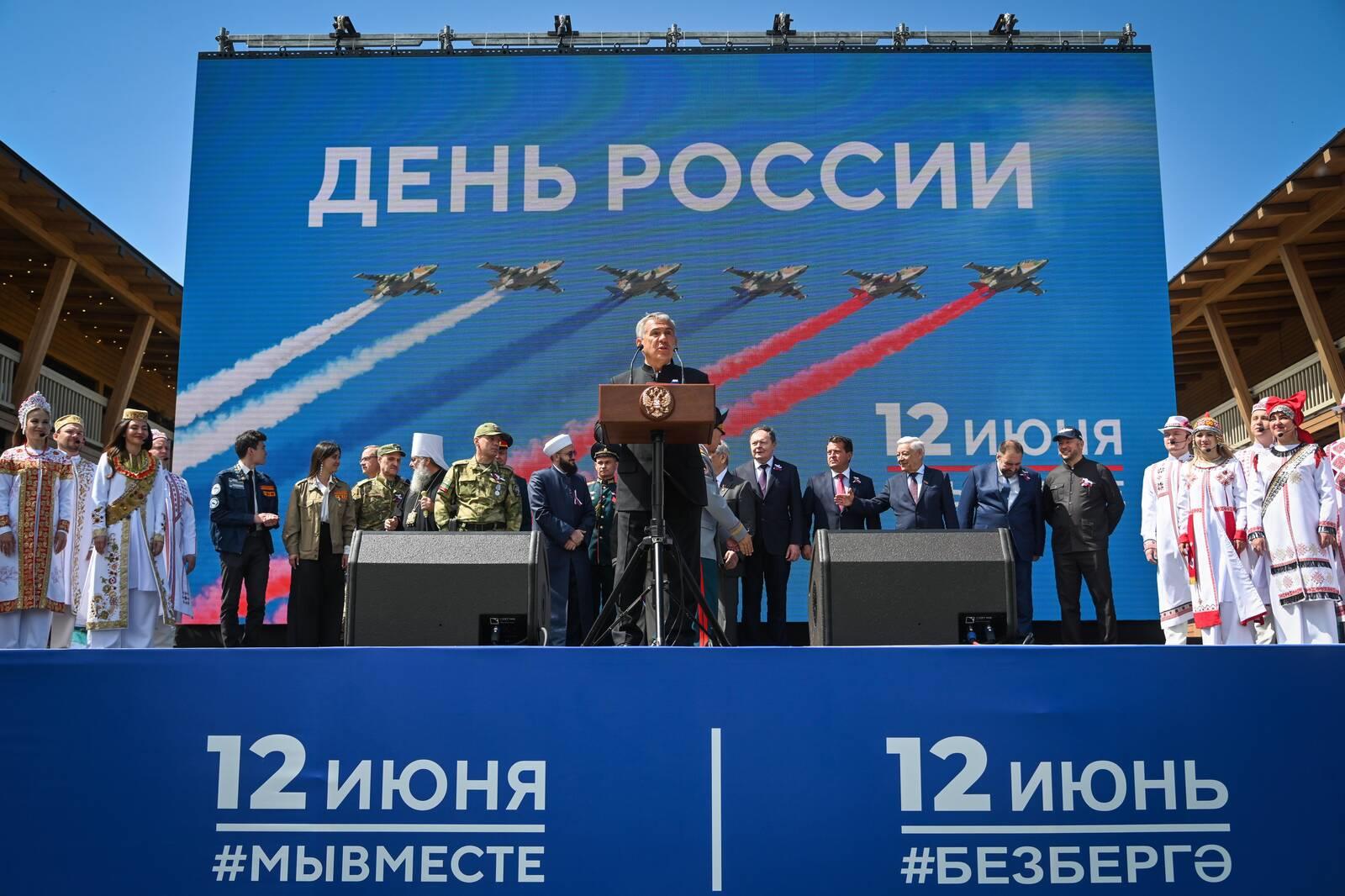- Мы гордимся нашей страной, ее многовековой историей, героическим прошлым, многообразием культуры и традиций, - отметил раис в приветственном слове к жителям Казани и гостям столицы Татарстана.