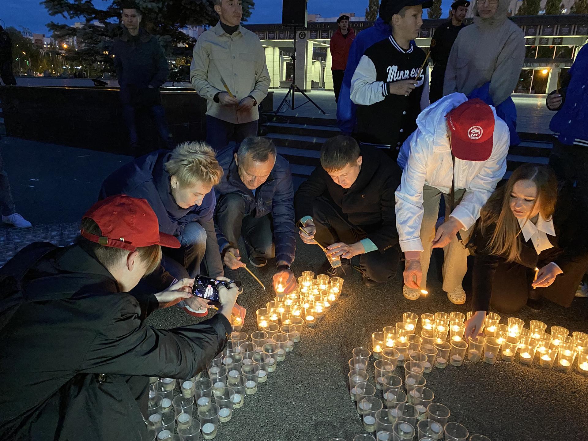 Вечером 21 июня в парке Победы активисты молодежных движений выложили из 25 тысяч свечей изображение танка Т-34 с надписью «Колхозник Татарии». Напомним, осенью 1942 года по инициативе молодежи Сабинского района в сельских районах Татарстана широко развернулся сбор средств на танковую колонну «Колхозник Татарии». Всего сельские труженики собрали 100 миллионов рублей, а 5 мая 1943 года танковая колонна из 200 «тридцатьчетверок» была передана делегацией ТАССР трем бригадам 10-го танкового корпуса в прифронтовом Старом Осколе. После зажжения свечей участники мероприятия почтили память погибших в Великой Отечественной войне минутой молчания.