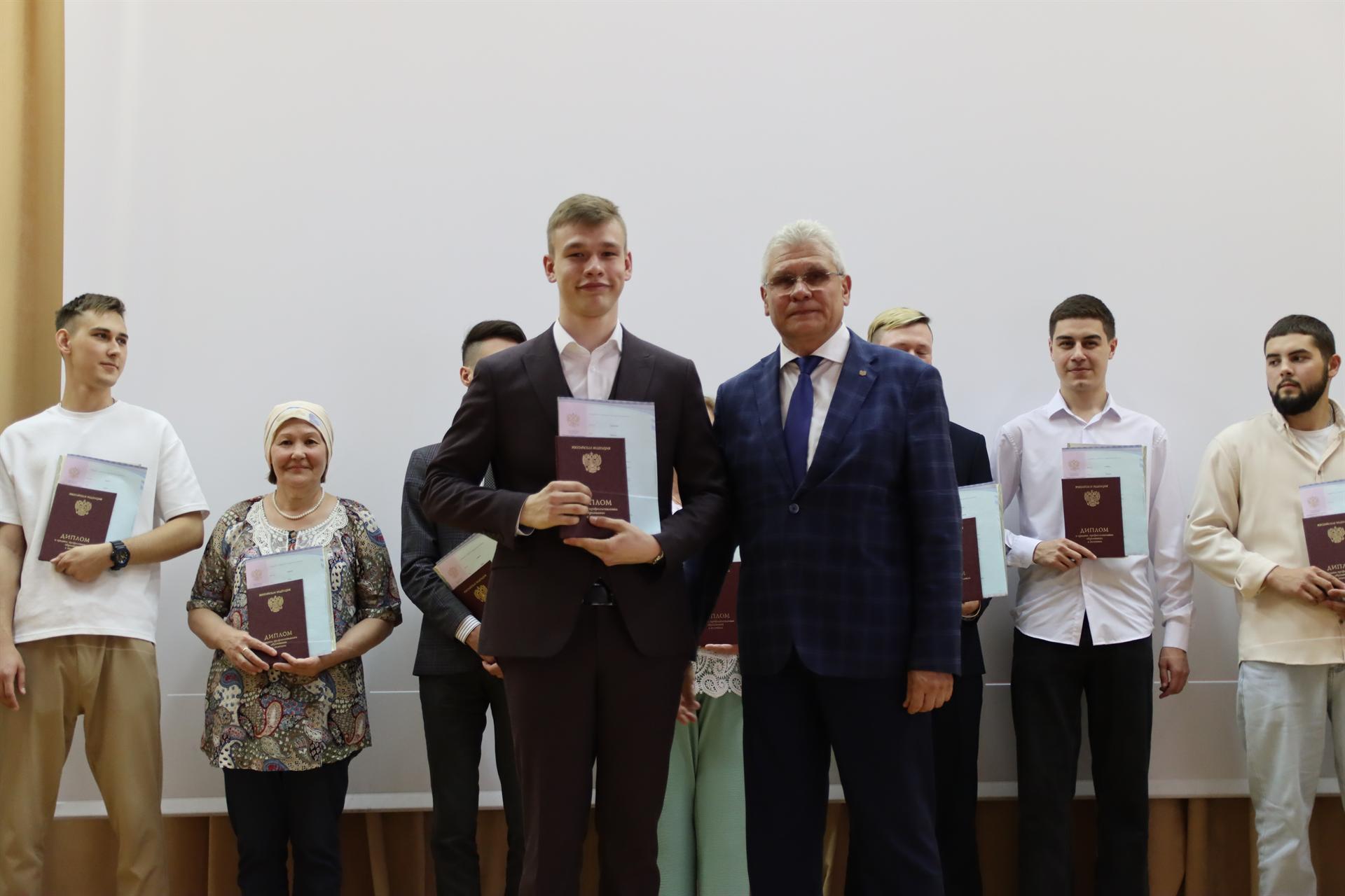 Проректор по науке и коммерциализации Игорь Ившин и директор института цифровых технологий и экономики Эдуард Беляев поздравили выпускников Казанского энергетического колледжа с получением дипломов.