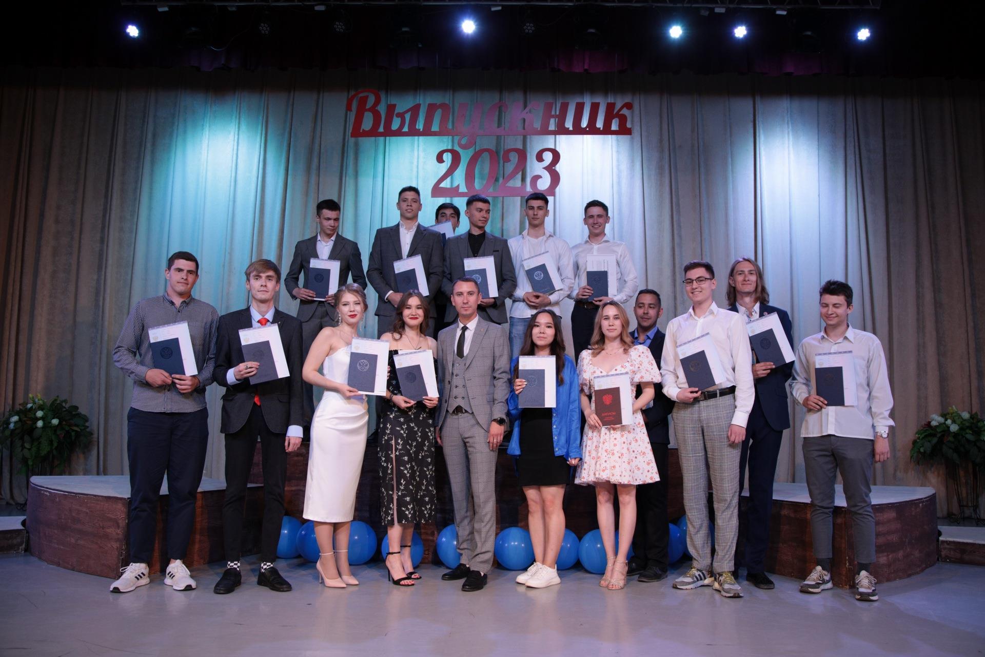 Александр Леонтьев вручил выпускникам ИТЭ «красные дипломы». Но после того как фотограф сделал общий снимок счастливых обладателей заветных корочек, и ребята начали спускаться в зал, ведущий церемонии попросил остаться на сцене новоиспеченного бакалавра Гульфию Мустафину, пообещав ей сюрприз. На экране появились ее фотографии с молодым человеком. Под романтическую музыку он вышел к Гульфие, подарил ей букет цветов, признался в любви, встал на одно колено и протянул коробочку со свадебным кольцом.