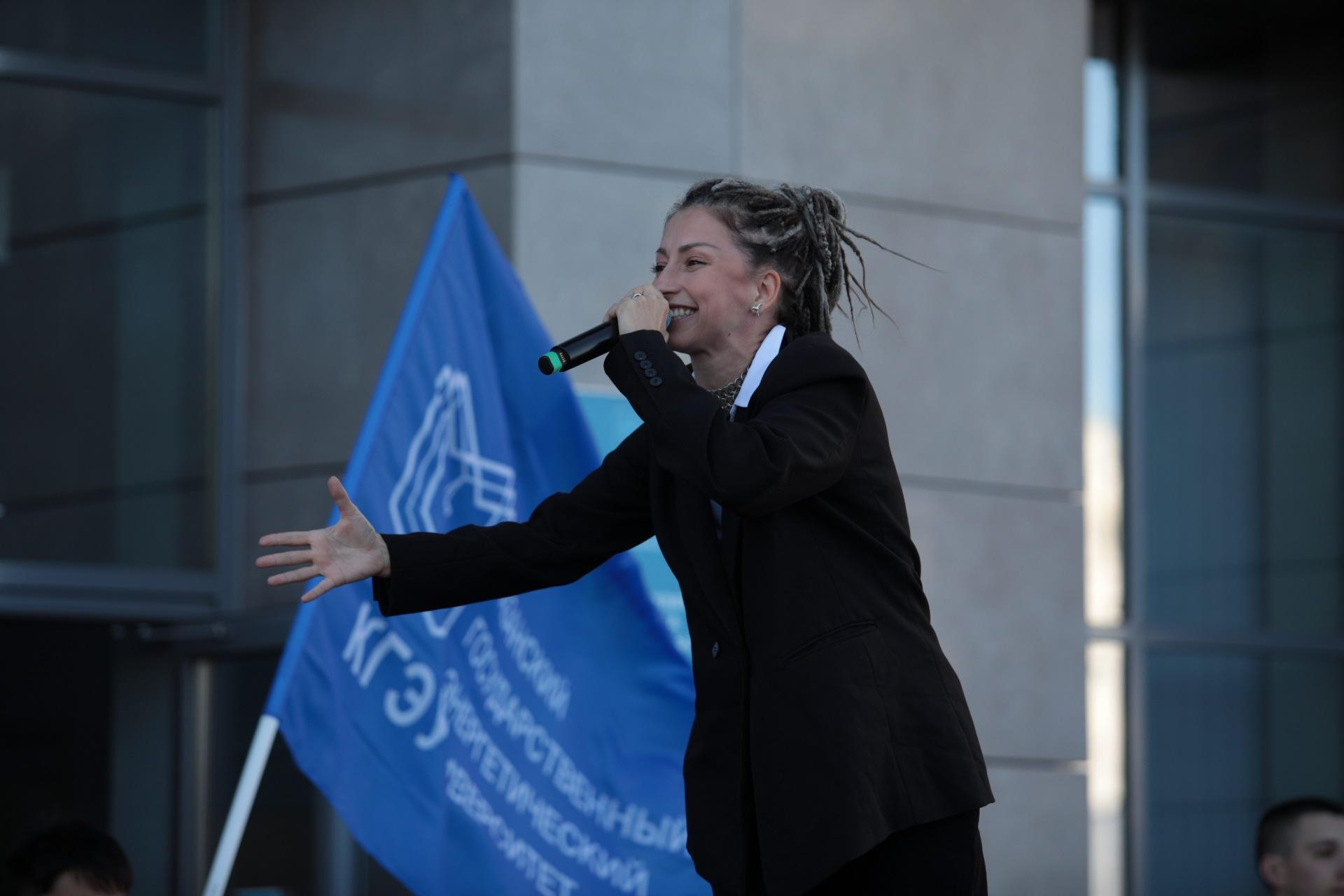 Торжественные речи официальных лиц «разбавляли» выступления творческих коллективов КГЭУ. А гвоздем программы стала солистка группы «Мураками» - выпускница КГЭУ Диляра Вагапова с хитом «Нулевой километр».