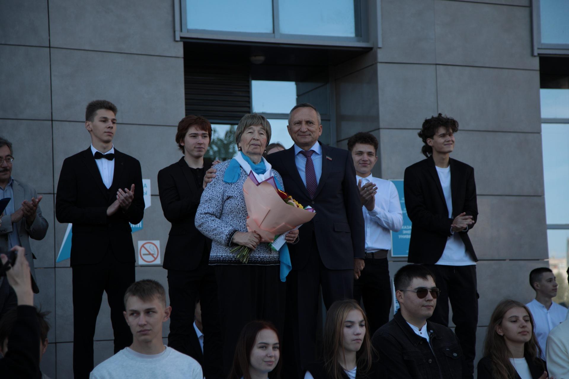 С особой теплотой и уважением ректор КГЭУ передал слово ветерану вуза – педагогу-психологу Дергуновой Дине Иосифовне, которая отдала университету более 50 лет своей трудовой биографии.