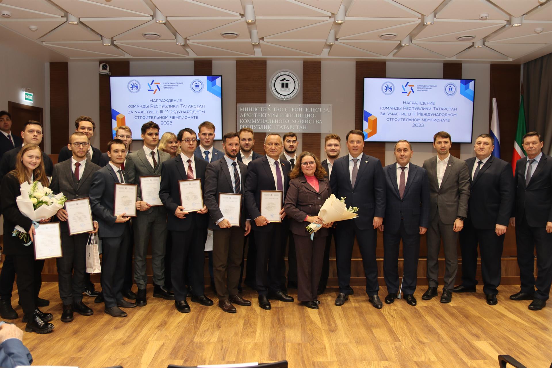 Министр строительства, архитектуры и ЖКХ Республики Татарстан Марат Айзатуллин вручил ректору КГЭУ Эдварду Абдуллазянову Благодарность «за вклад в подготовку III Международного чемпионата профессионального мастерства в сфере промышленного строительства». Он также наградил Благодарностями от министерства всех студентов и экспертов КГЭУ, принявших участие в чемпионате.