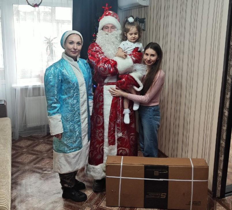Первая остановка – в поселке Снежное Донецкой Республики. Екатерина Федосеева и ее спутник исполнили мечту юной местной жительницы Арины, которая отправила свою заявку на «Елку желаний» портала Госуслуги РФ. Волонтеры из Казани подарили девочке велосипед за 12 тысяч рублей.