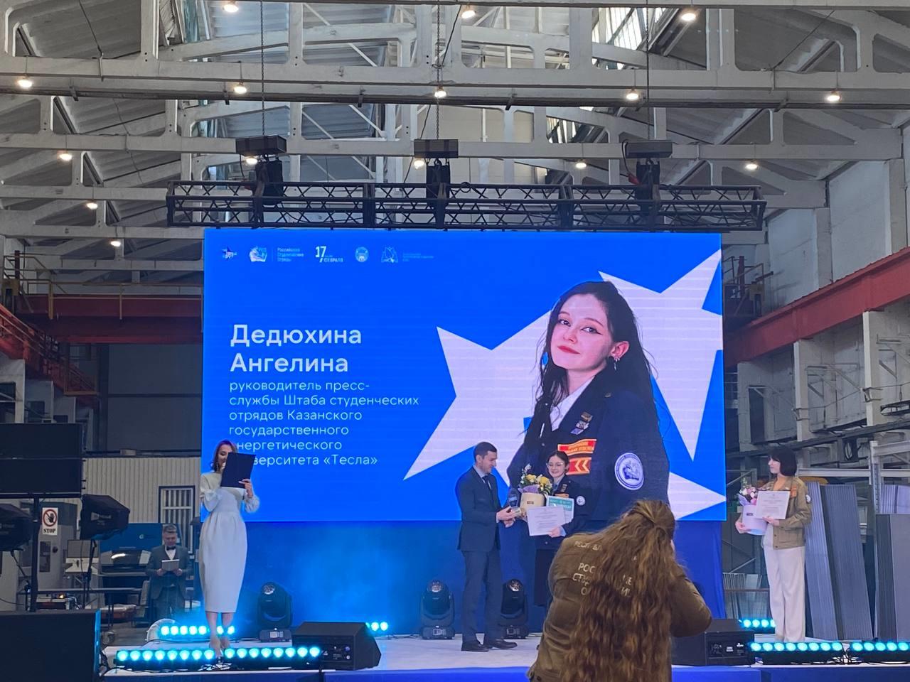 Лучшими признаны три студенческих отряда Казанского энергетического университета – «Дельта», «Оникс» и «Высокое напряжение». Почетную грамоту министерства образования и науки РТ вручили начальнику управления КГЭУ по молодежной политике и воспитательной деятельности Гульнаре Ляукиной. За лучшее информационное сопровождение деятельности трудовых отрядов отмечена руководитель пресс-службы Штаба СО КГЭУ «Тесла» Ангелина Дедюхина, а также его экс-командир - командир Казанского штаба студенческих отрядов Аяз Хусниев.