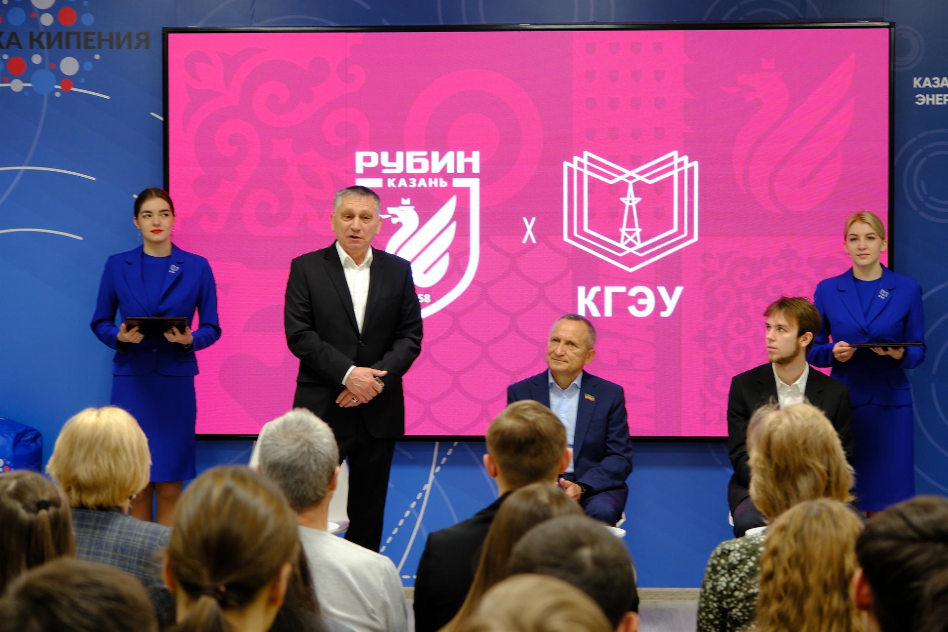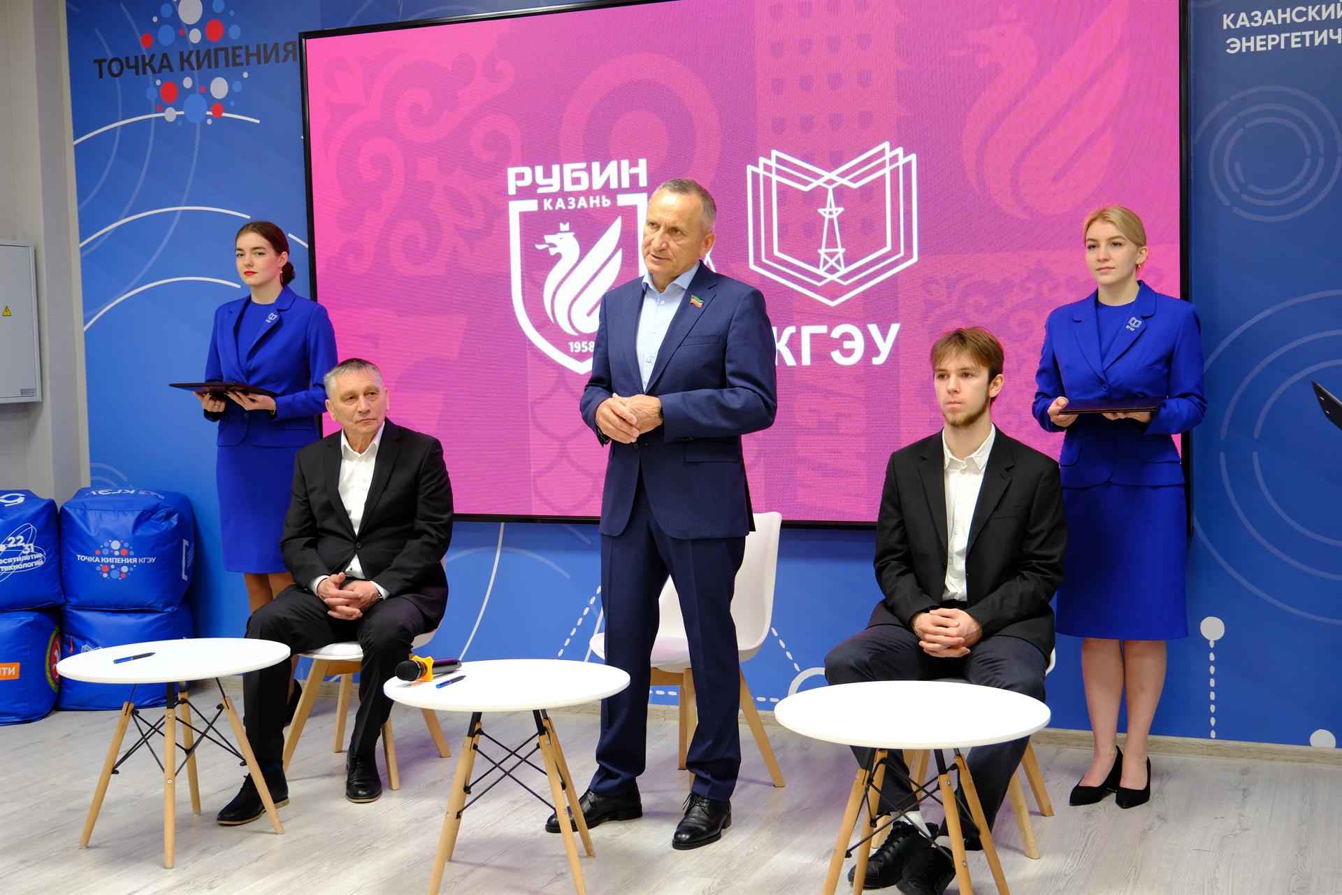 Документ скрепили своими подписями ректор КГЭУ Эдвард Абдуллазянов и гендиректор ФК «Рубин» Александр Айбатов. В рамках мероприятия в Казанском энергетическом университете открылся студенческий фан-клуб «Рубина», руководителем которого стал Никита Фадеев.