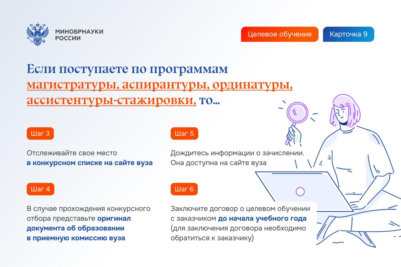 Шаг 8. Заключите договор о целевом обучении с заказчиком не позднее начала учебного года (в электронном виде через приложение «Госключ» или обратившись к заказчику).