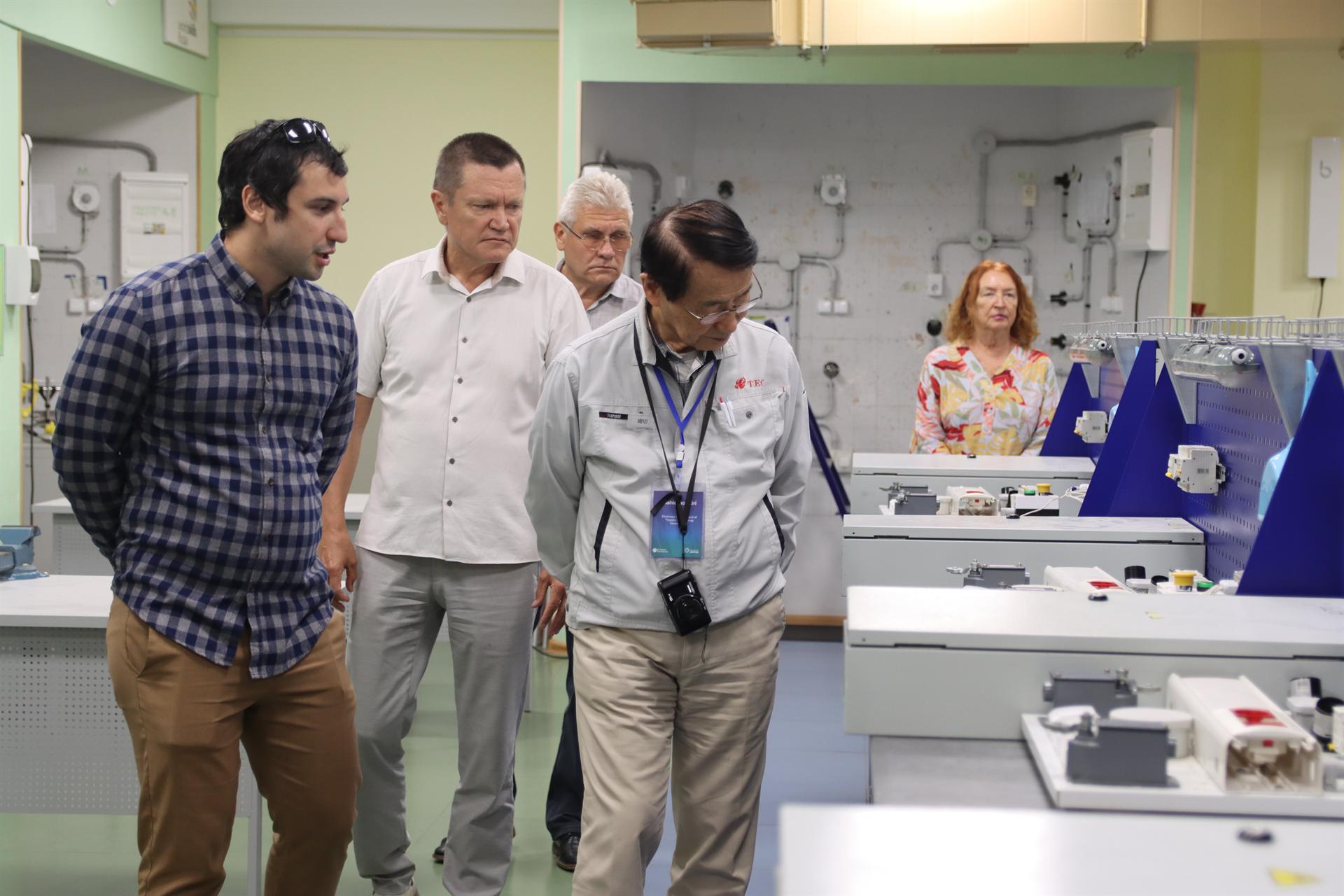 Производственный партнер КГЭУ АО «Сетевая компания» пригласила господина Тосио Хорикири на тематическую экскурсию «Ток бежит по проводам», одной из локаций которой является Казанский энергетический университет. Иностранному гостю показали уникальный учебный полигон «Подстанция 110/10 кВ» с диспетчерской, а также учебные и лабораторные классы ЦПК «Электро Скиллс», где студенты и школьники совершенно бесплатно получают рабочие специальности, без отрыва от основной учебы. Первый проректор КГЭУ – проректор по учебной работе Александр Леонтьев отметил, что в университете создано более 100 учебно-исследовательских лабораторий ведущих зарубежных и российских компаний.