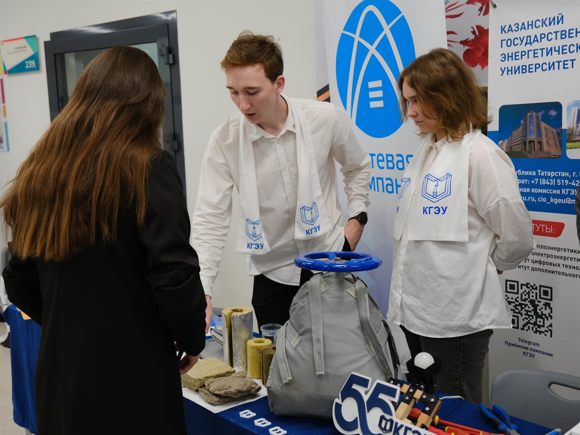 В качестве гидов-спикеров по стенду КГЭУ выступили начальник Управления по приему и профориентационной работе Анна Дербенева, студенты и аспиранты вуза, выпускники энергетических классов.
