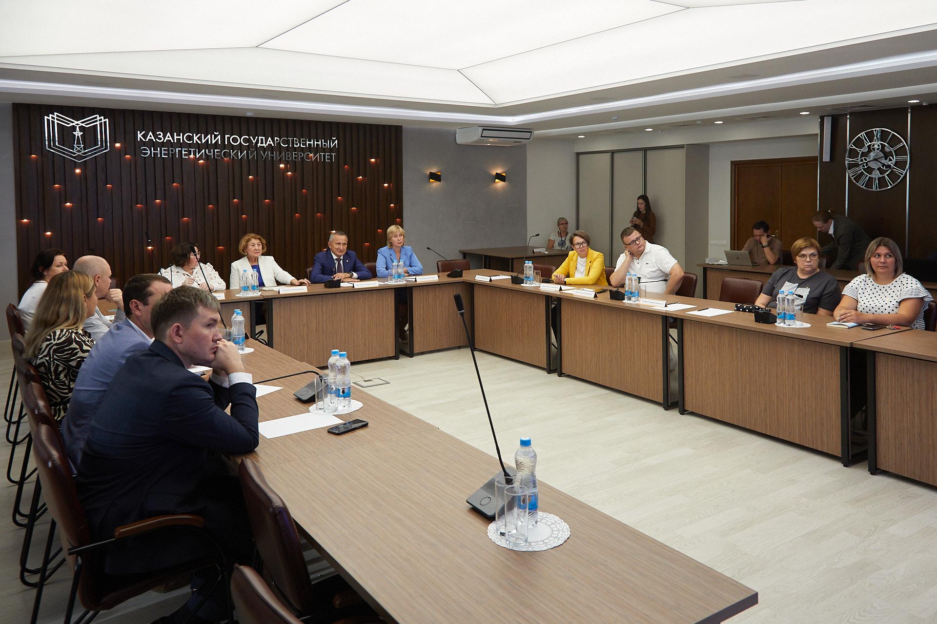В рамках визита в КГЭУ участников форума Kazan Digital Week 2024 состоялась встреча в формате круглого стола. Университет представляли ректор Эдвард Абдуллазянов, проректор по молодежной политике и воспитательной деятельности Ирина Жукова, руководитель Центра развития общественных проектов «Обучение служением» Варвара Кулькова, а также директора Институтов, их заместители и студенты, обучающиеся по программе «Обучение служением».