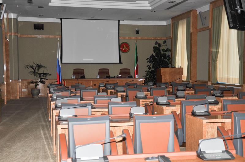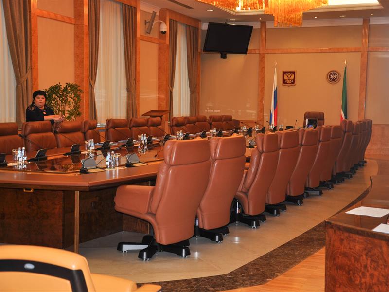 В кабинетах пресс-службы развешено множество фотографий Президента, мероприятий с его участием, много цифровой техники стоит в кабинете оператора и программиста. Осмотрев помещения пресс-службы, гостей проводили в совещательные залы. Ребят приятно удивило техническое оснащение залов: наличие прямой трансляции, огромные мониторы на каждом столе.