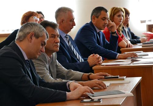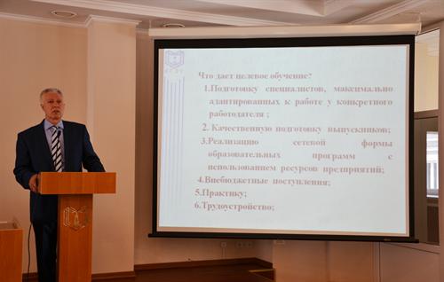Далее на трибуну был приглашен проректор по ИП Д.Ф. Губаев, который выступил с докладом «О работе ЦЦПТ по целевому приему на обучение, целевой контрактной подготовке и трудоустройству выпускников».
