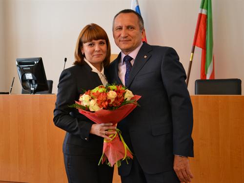 Ректор КГЭУ Э.Ю. Абдуллазянов вручил Альбине Ильхамовне букет со словами благодарности за её труды на благо КГЭУ, сравнив деятельность А.И. Шамеевой с работой по защите стабильности и устойчивости нашего вуза.
