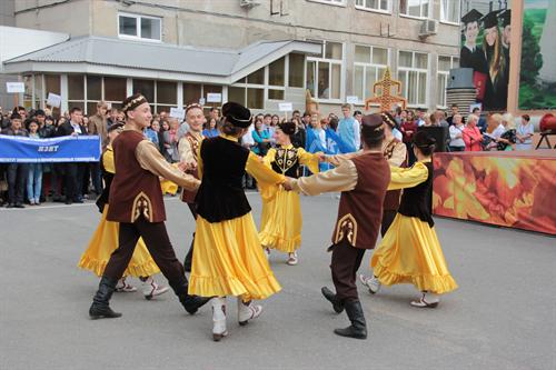 В завершении праздника студенты КГЭУ зажгли толпу первокурсников и профессорско-преподавательский состав танцевальным флешмобом и салютом из конфетти.